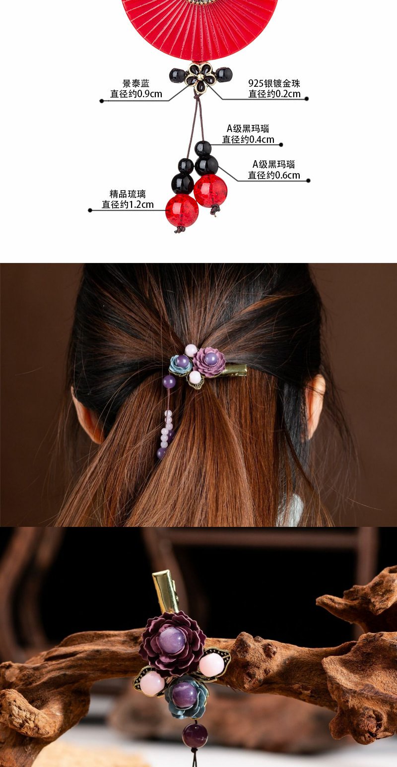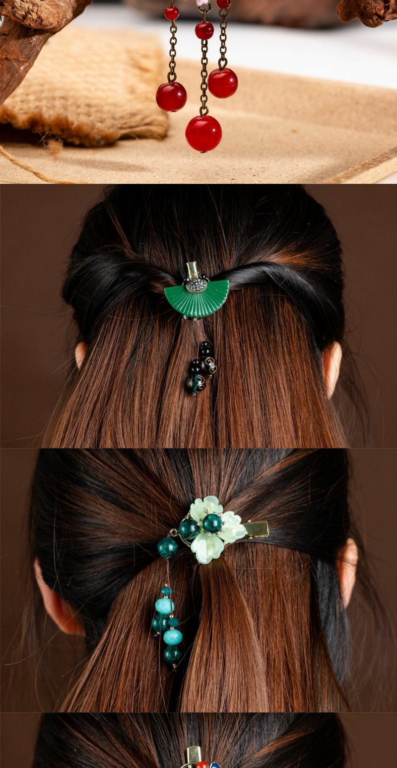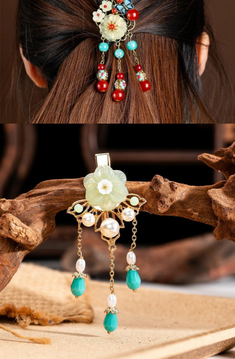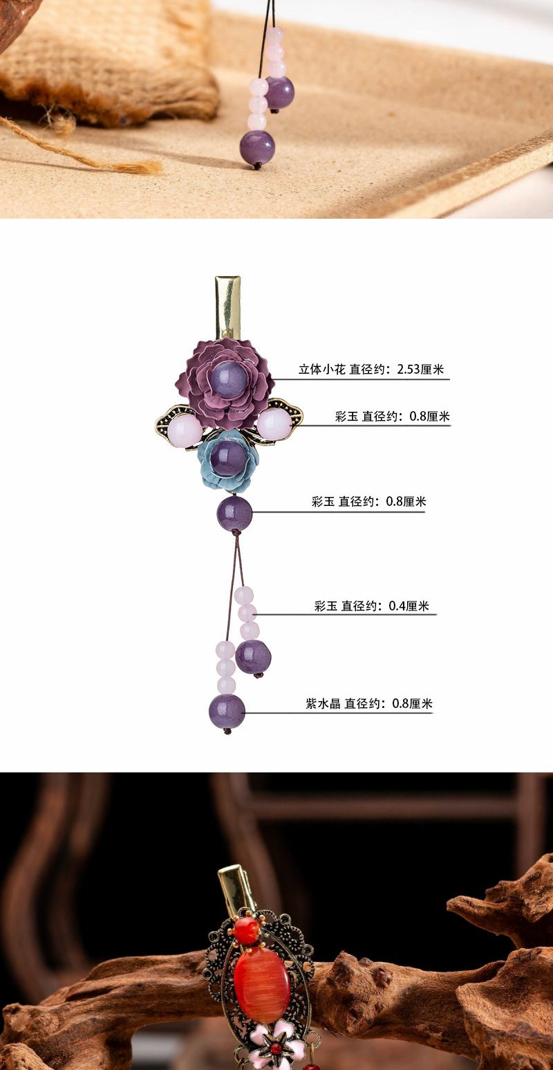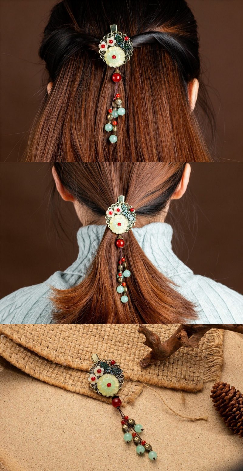 岫玉花朵小发夹成人头饰半扎发盘发边夹顶夹民族风发饰复古流苏女