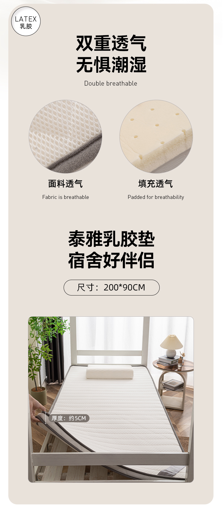 多喜爱美眠康 学生宿舍专用 加厚护脊床垫 泰雅乳胶垫