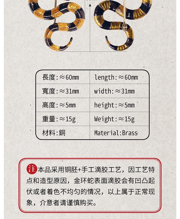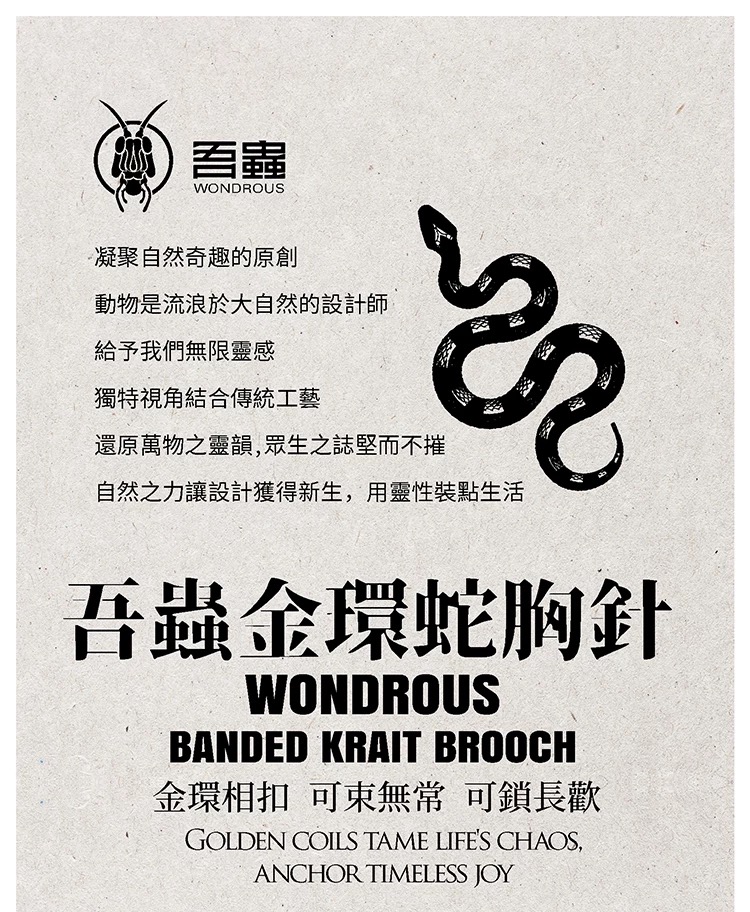 吾蟲-金环蛇胸针别针 铜+滴胶 个性配饰 蛇主题礼品【官方授权 48小时发货】