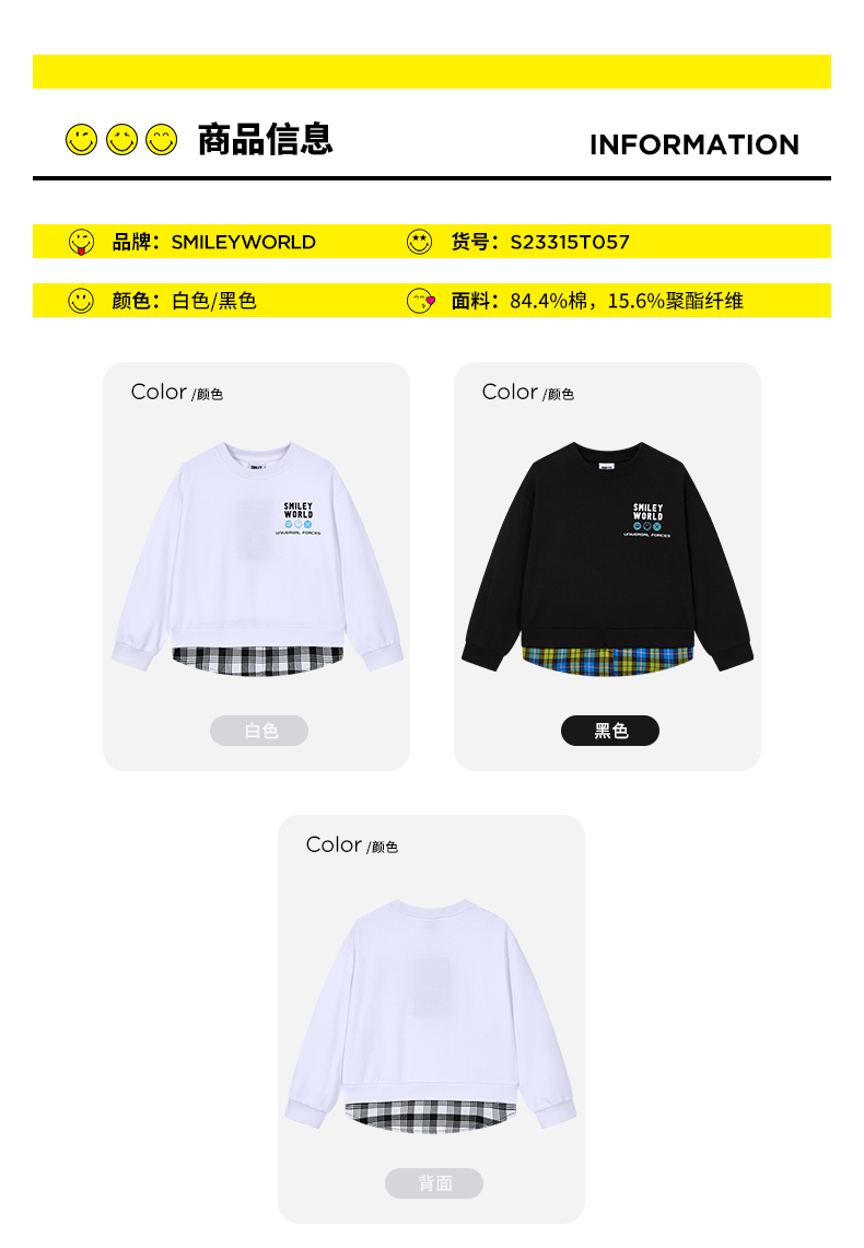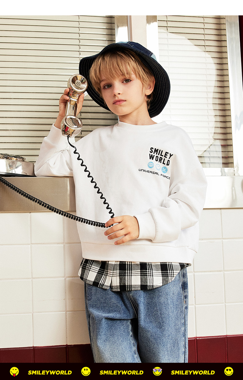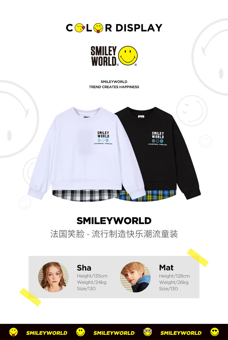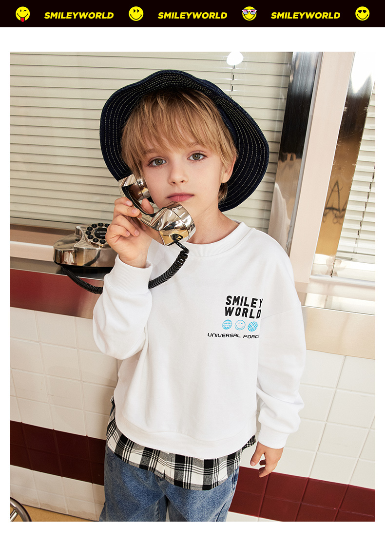 SMILEY WORLD秋季儿童假两件潮流出街卫衣薄款休闲宽松上衣S23315T057 商品图0