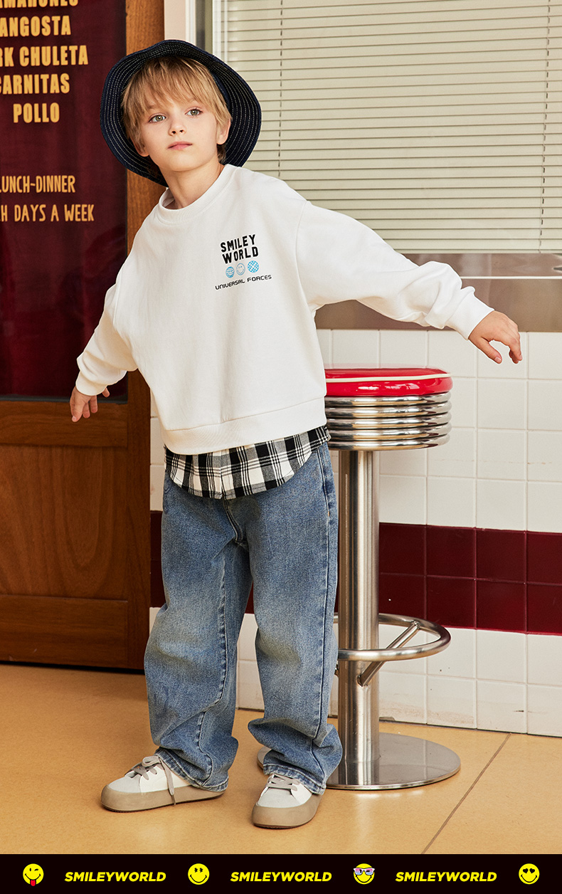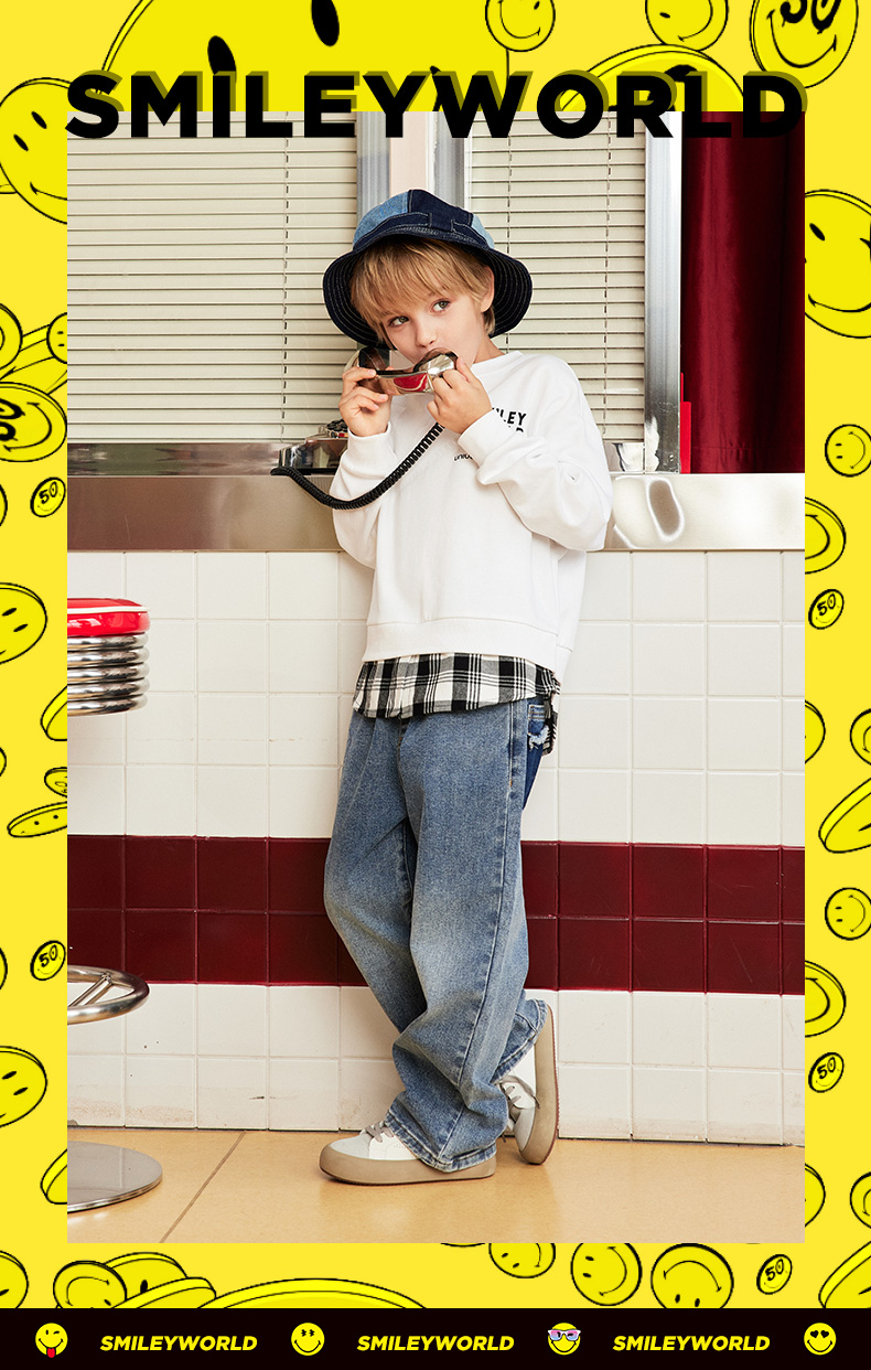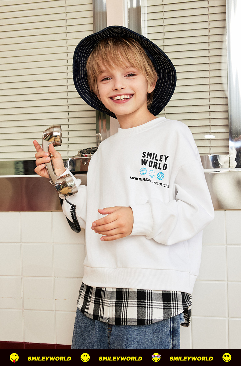 SMILEY WORLD秋季儿童假两件潮流出街卫衣薄款休闲宽松上衣S23315T057 商品图0