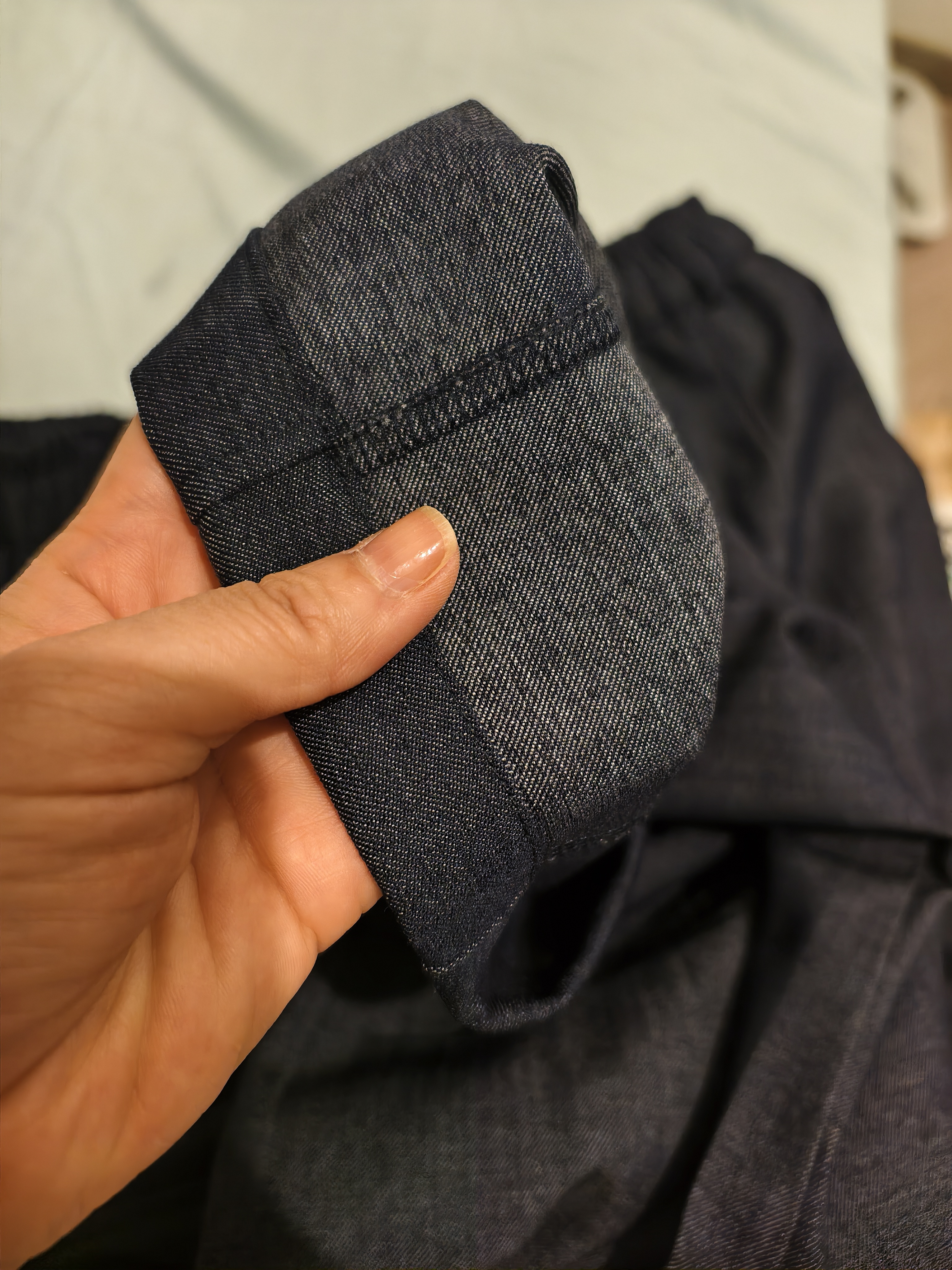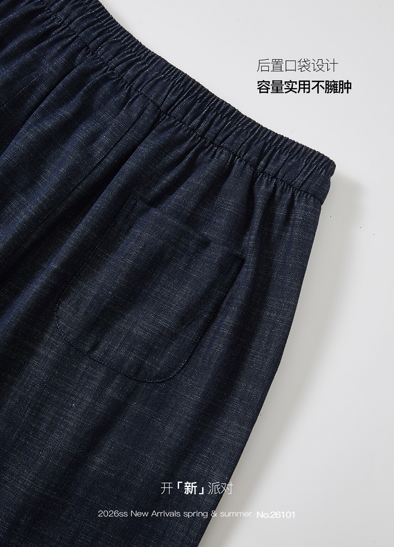 品名:棉麻牛仔弯刀裤