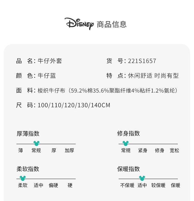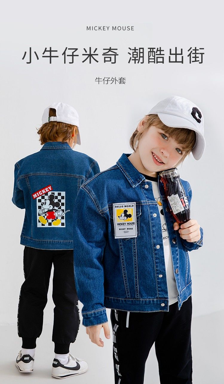 迪士尼童装男童牛仔外套春季时尚经典宽松卡通大图案儿童潮221S1657