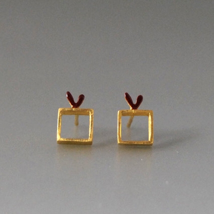 北京仓|Kiss the Frog-颈指间的童话-爱的时间窗 耳钉 (微瑕)[希腊设计师 ]