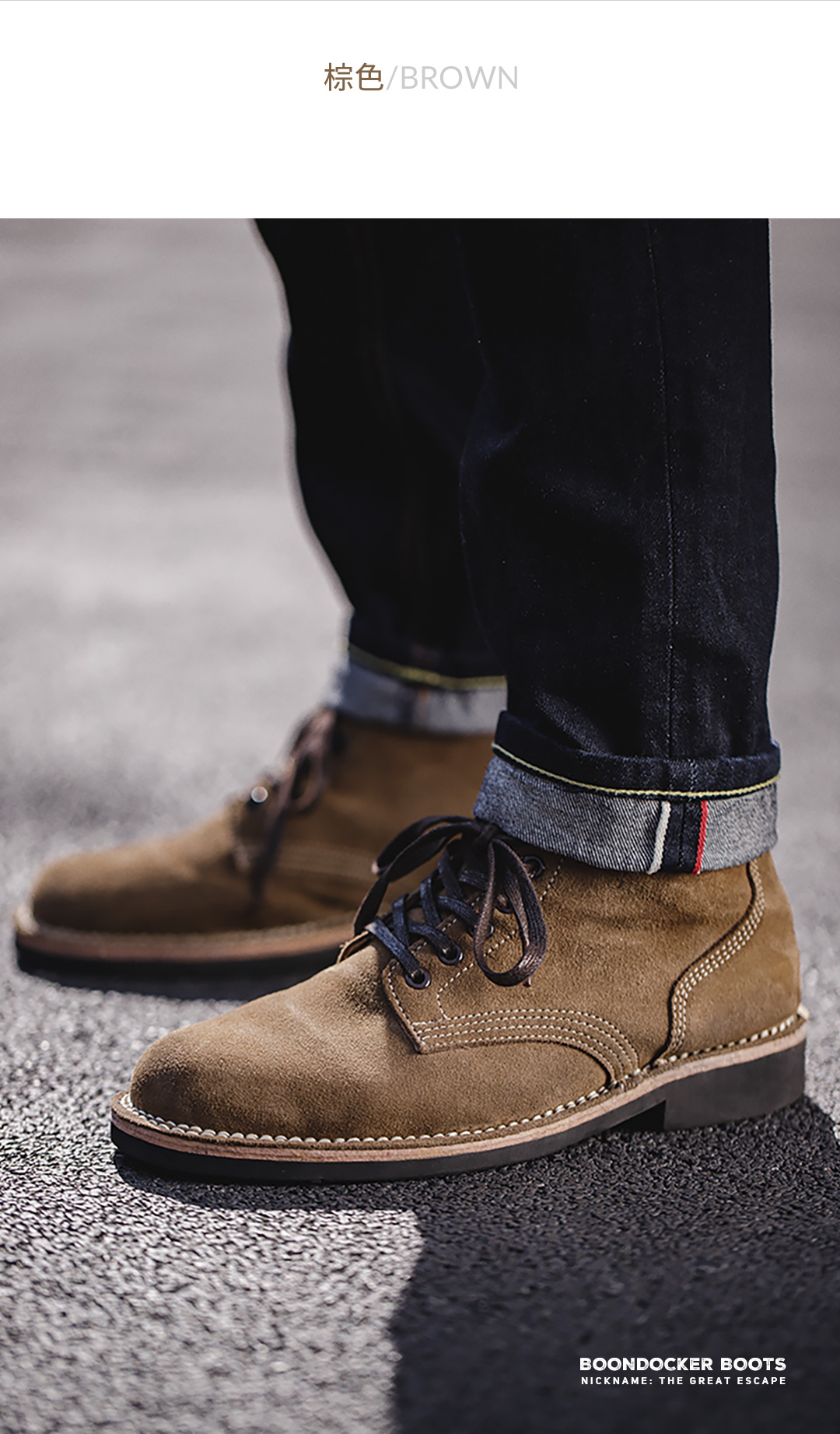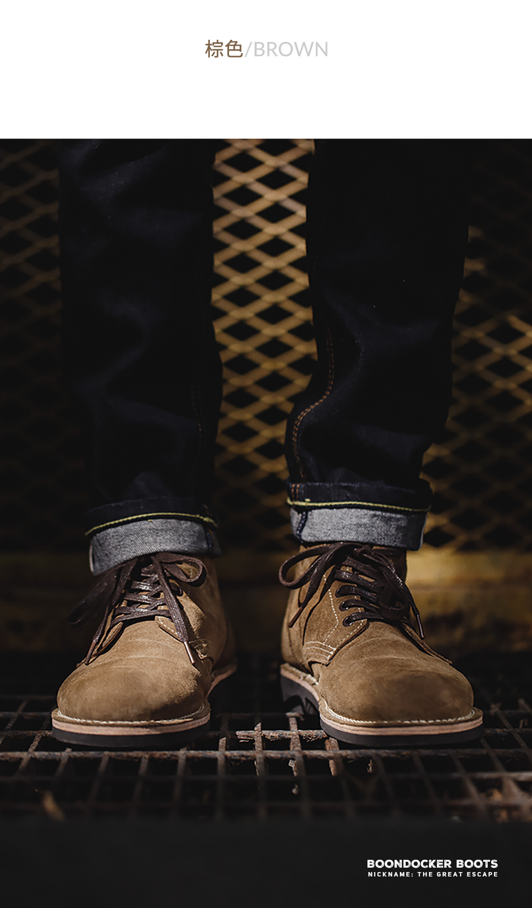 【马登男鞋】工装靴男鞋秋季美式高帮沙漠靴复古大逃亡靴中帮皮鞋英伦风马丁靴