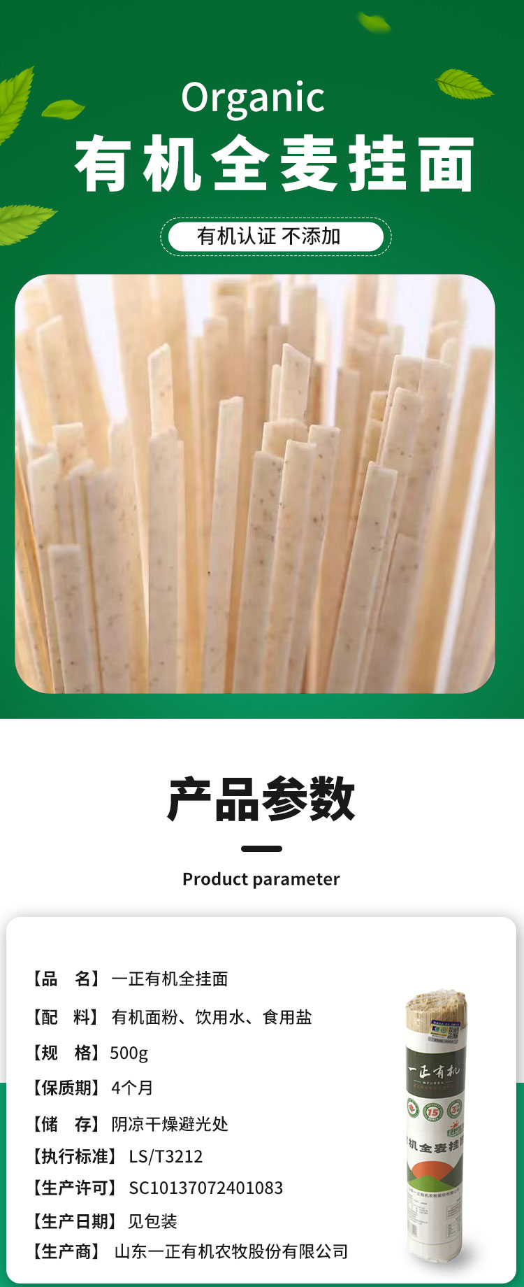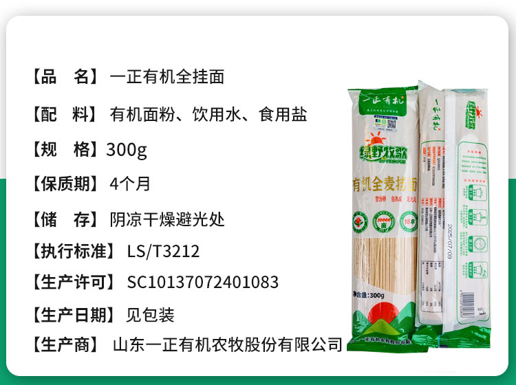 【厂商直发】有机全麦挂面面条500g*5袋装杂粮主食健康包邮