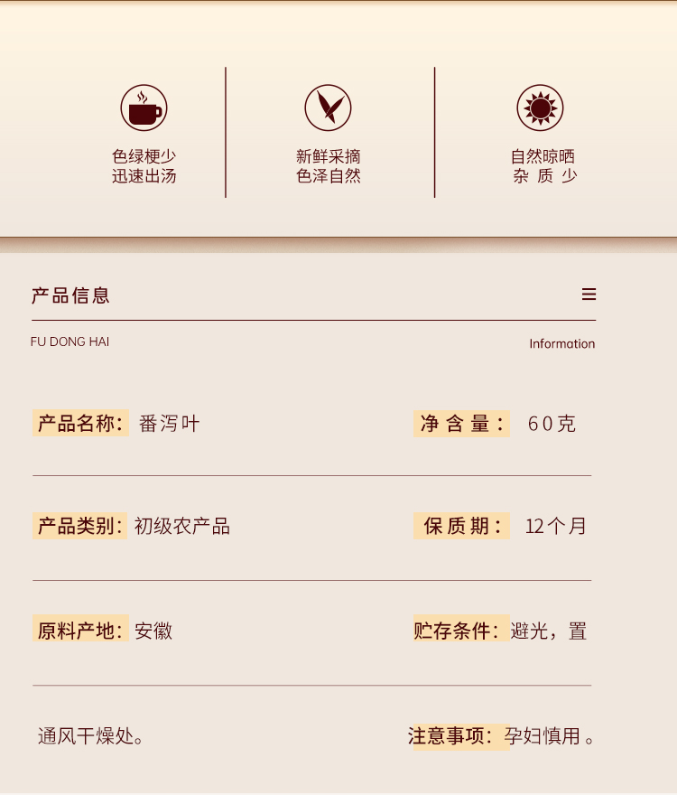 福东海 番泻 60克 非颗粒泻叶潘泡竹叶狭叶潘泻
