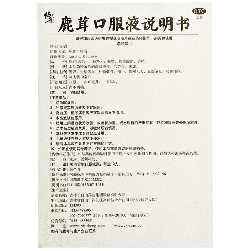 修正 鹿茸口服液10支 生精养血补髓健骨畏寒无力血虚晕眩腰膝酸软
