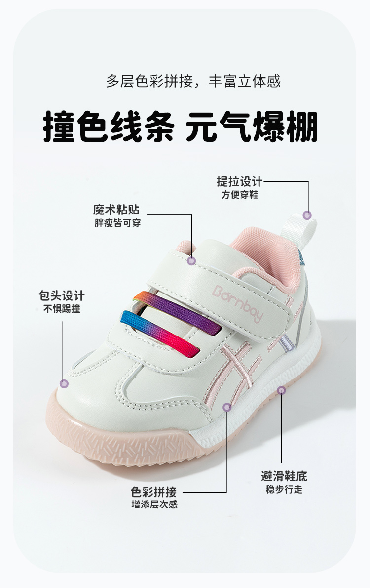 贝贝怡【开学季】秋季童鞋宝宝软底学步鞋男女童防滑魔术贴防踢撞面包鞋ZB3DX022