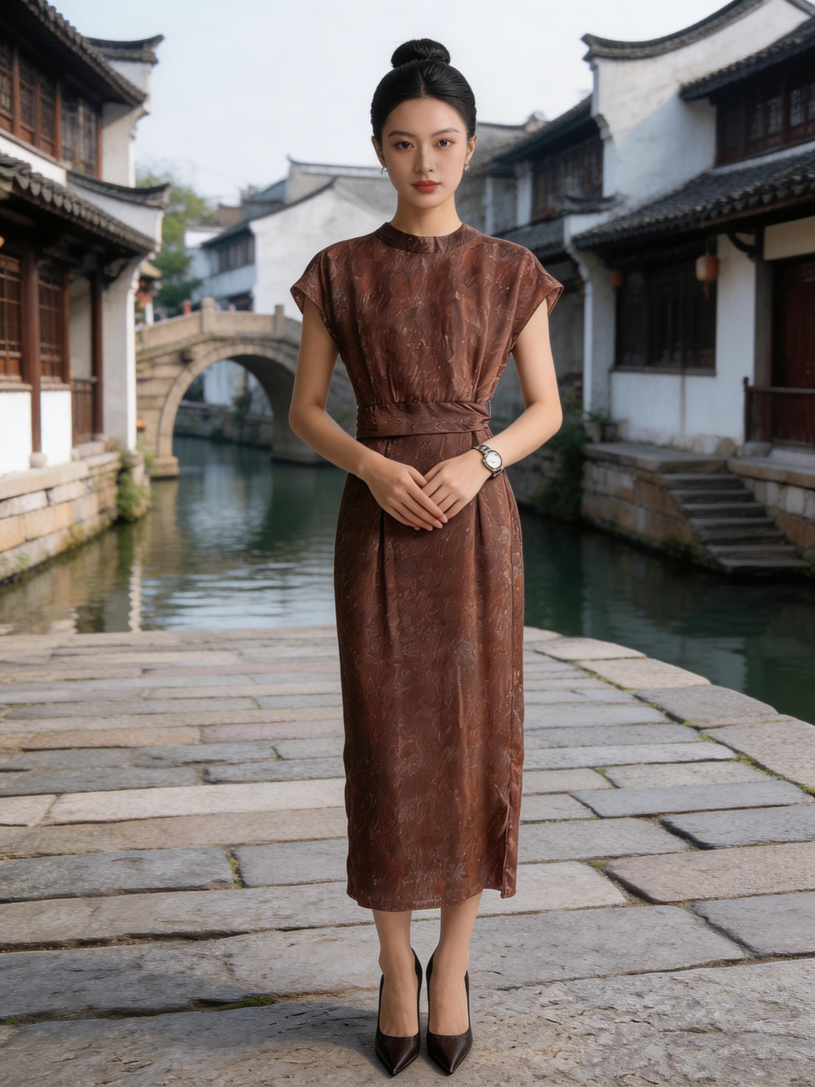 小立领(半高领)修饰颈部线条,弱化颈纹,自带端庄温婉的气质,完美适配新中式 / 通勤风