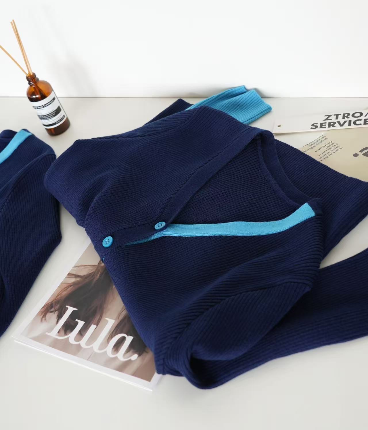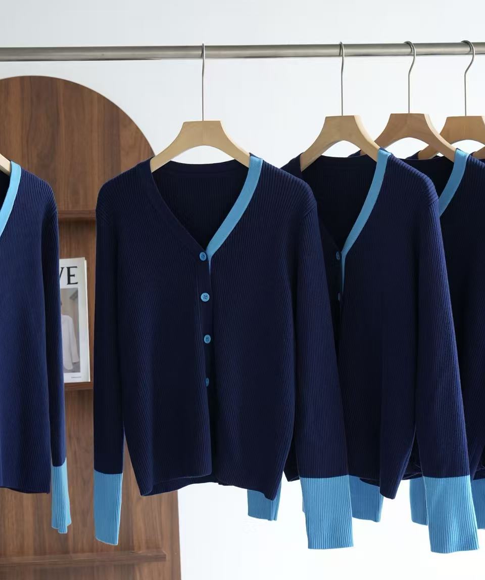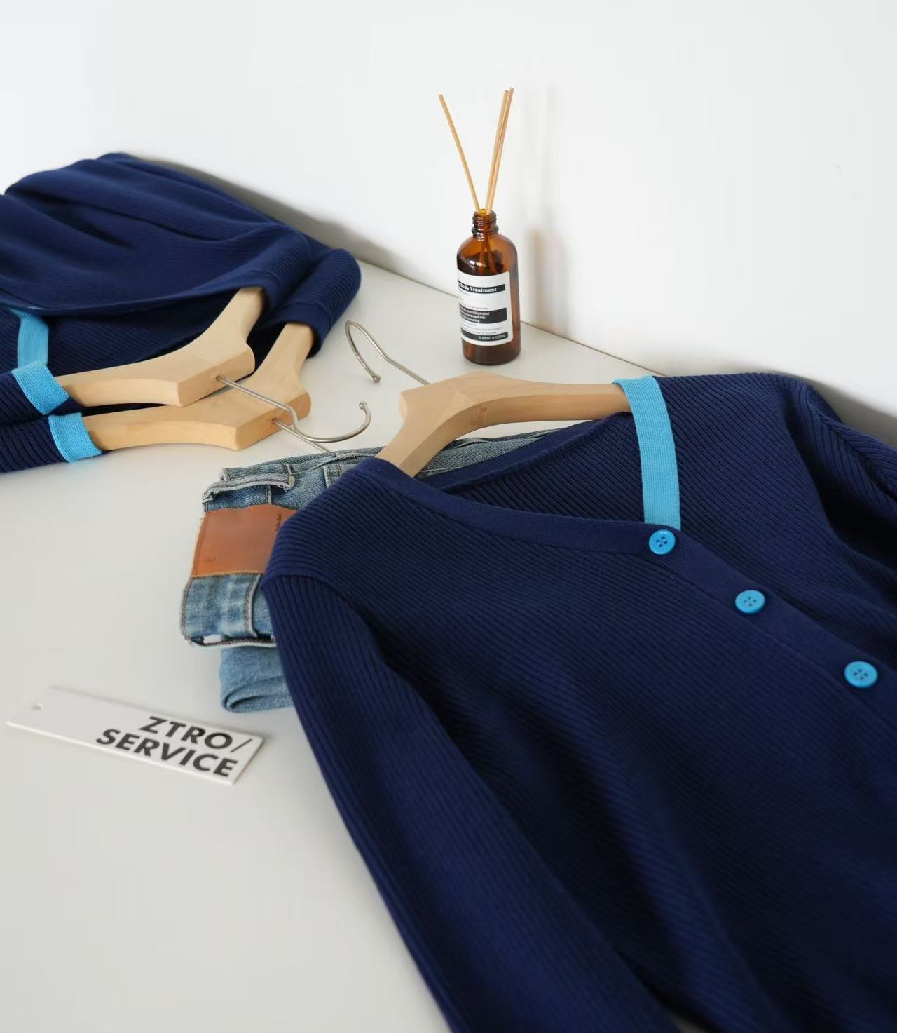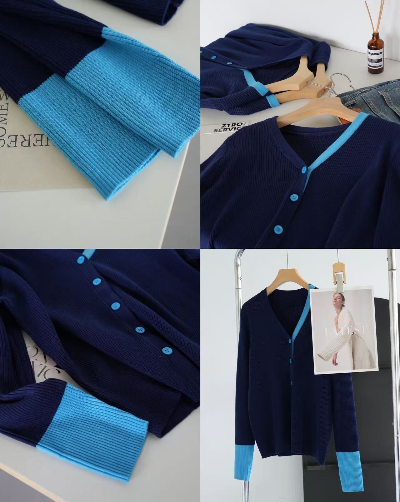 【克莱因蓝撞色针织外套】克莱因蓝撞色领口➕袖子 撞色V领➕利落剪裁,经典版型藏肉又不失质感