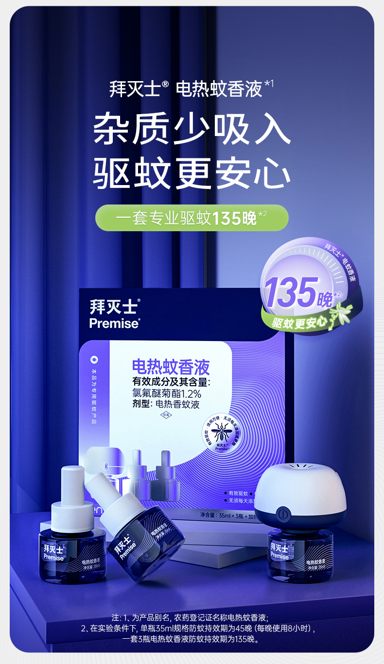 拜耳拜灭士电热蚊香液 家用插电式驱蚊液器 婴儿孕妇可用