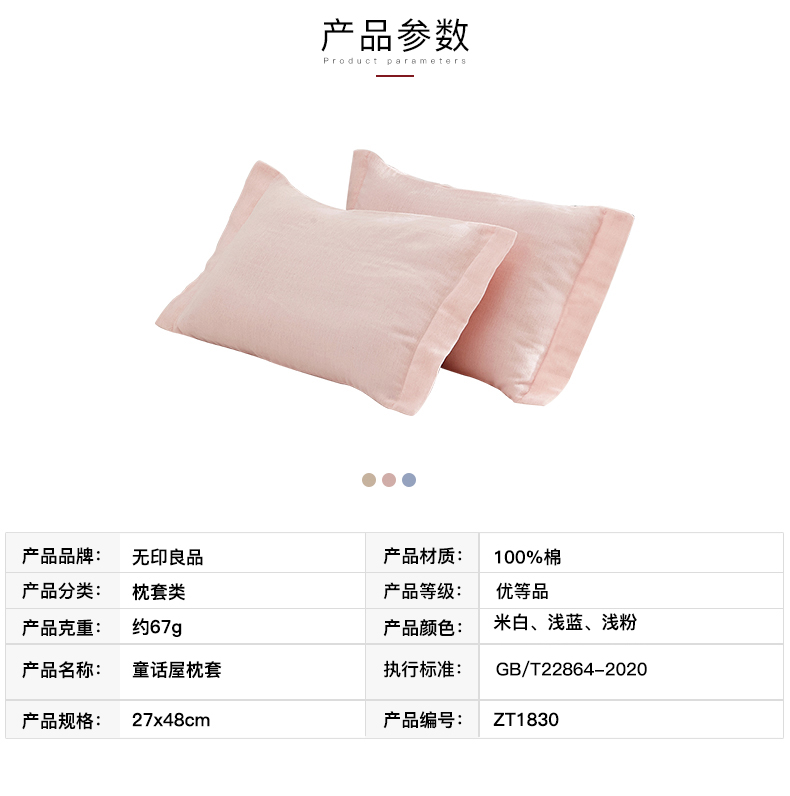 童话屋系列纯棉枕套一个婴幼儿儿童宝宝专用 27*48cm 无印良品