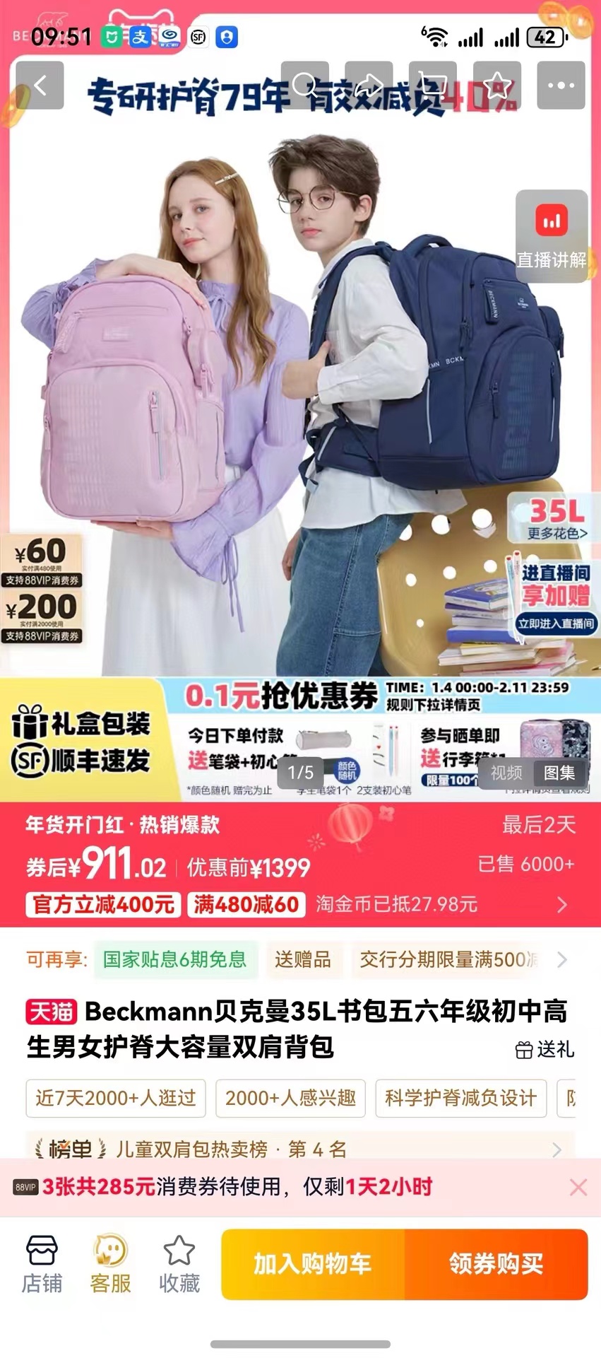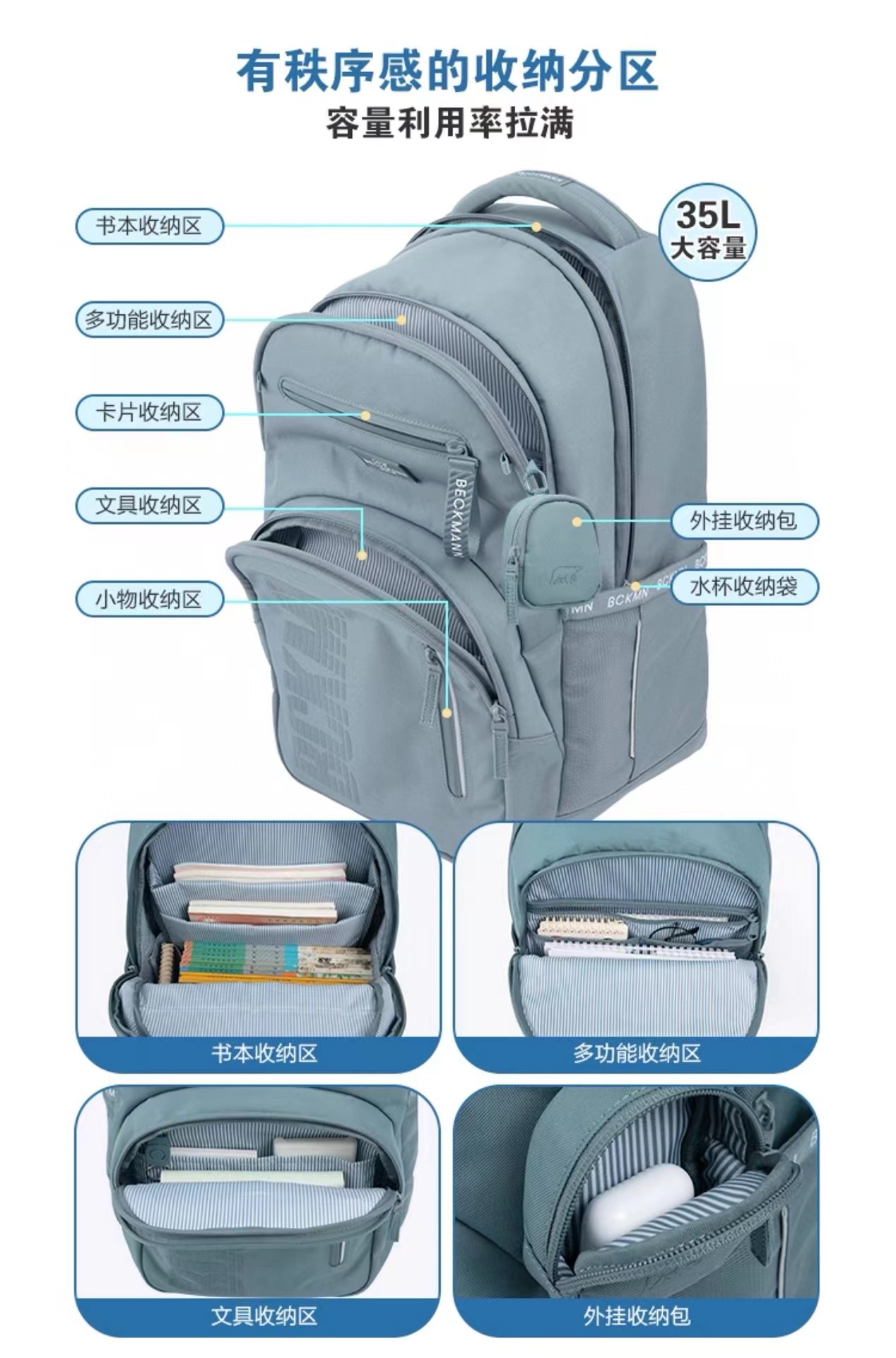 35L大书包 初中高生男女护脊大容量双肩背包,自重1200克,配有黄色反光防雨罩,防泼水,护脊铝条,反重力背负系统,背着不累