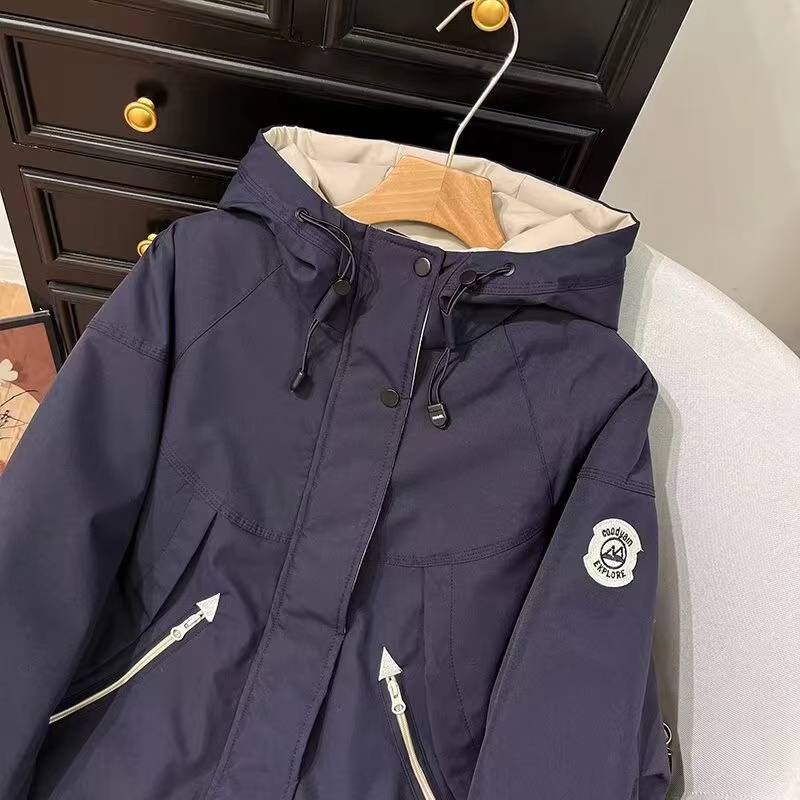 D122406连帽新款加绒保暖休闲羊羔毛派克服外套休闲服女