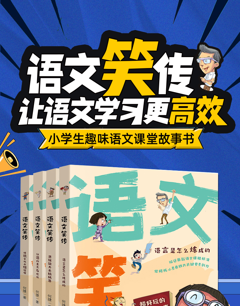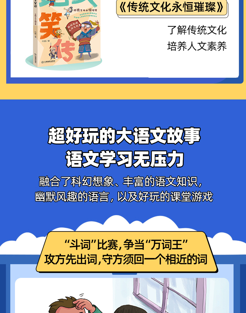 《语文笑传》是一套前所未有的爆笑语文课堂故事书,本书以独具一格的方式呈现了与众不同的语文课堂故事,融合了科幻想象、丰富的语文知识,以及作者幽默风趣的语言,是一本十分符合小学生阅读趣味的故事书。
