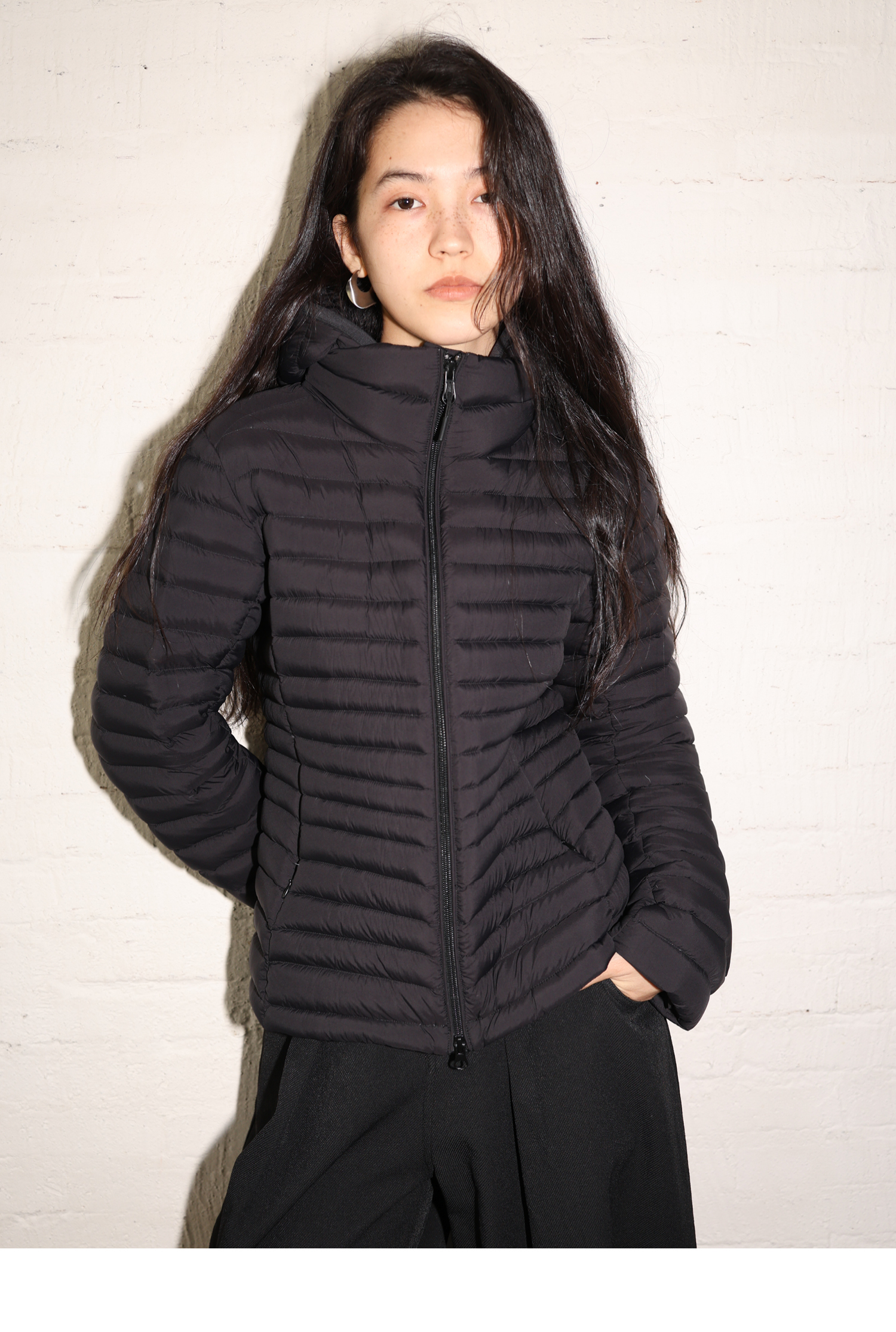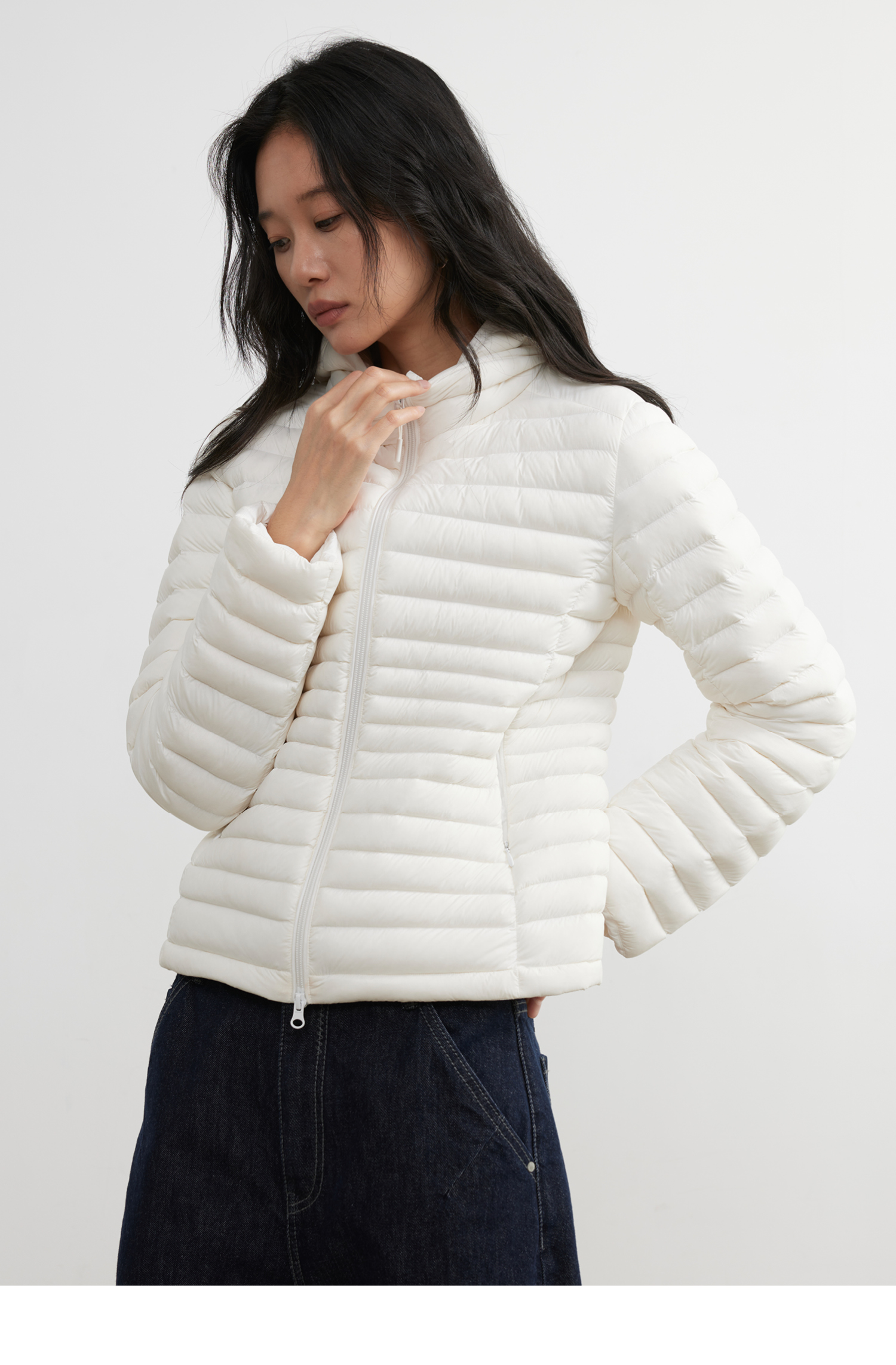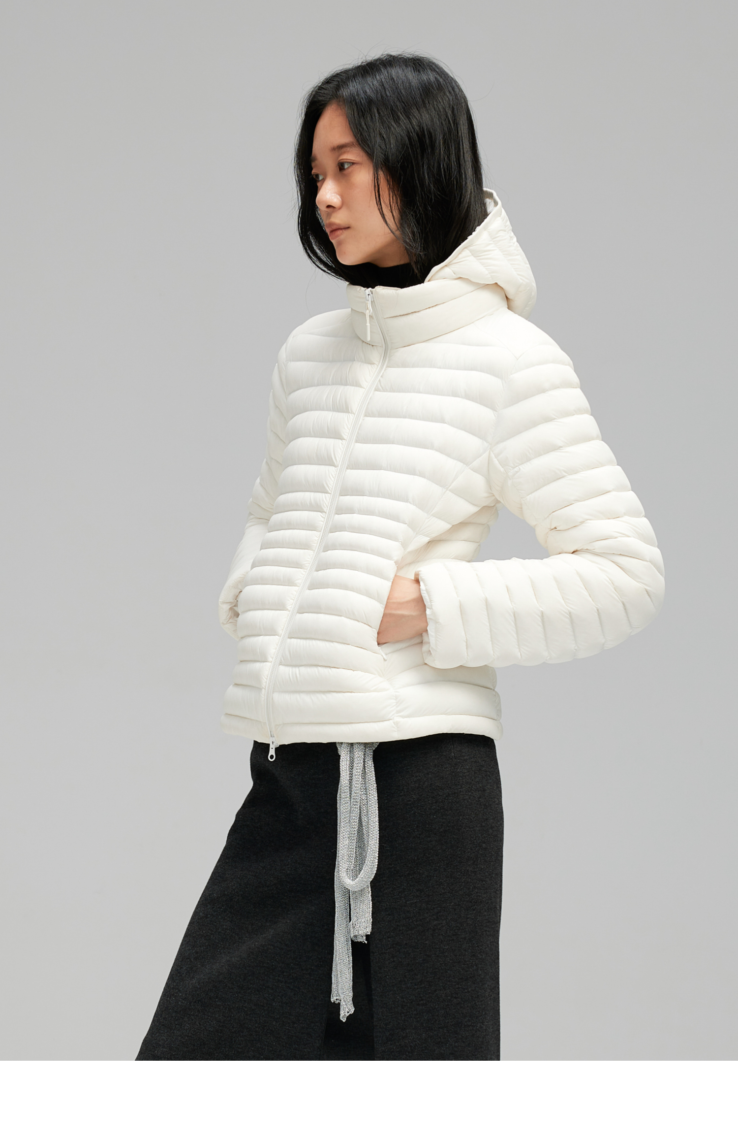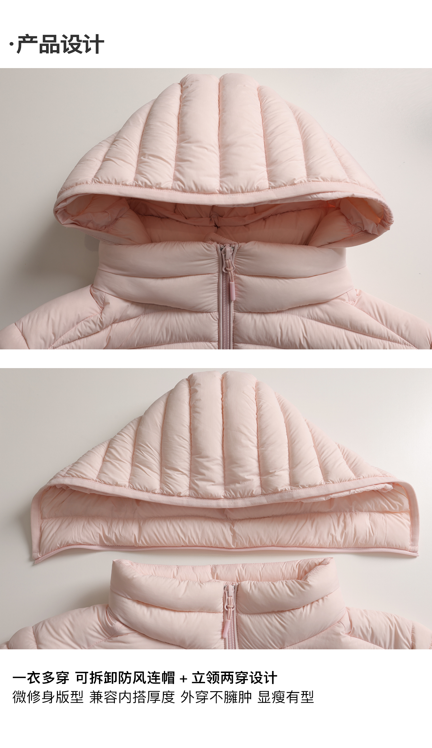 素舶 90白鸭绒纸片人超轻保暖连帽可收纳沙漏收腰修身排骨羽绒服