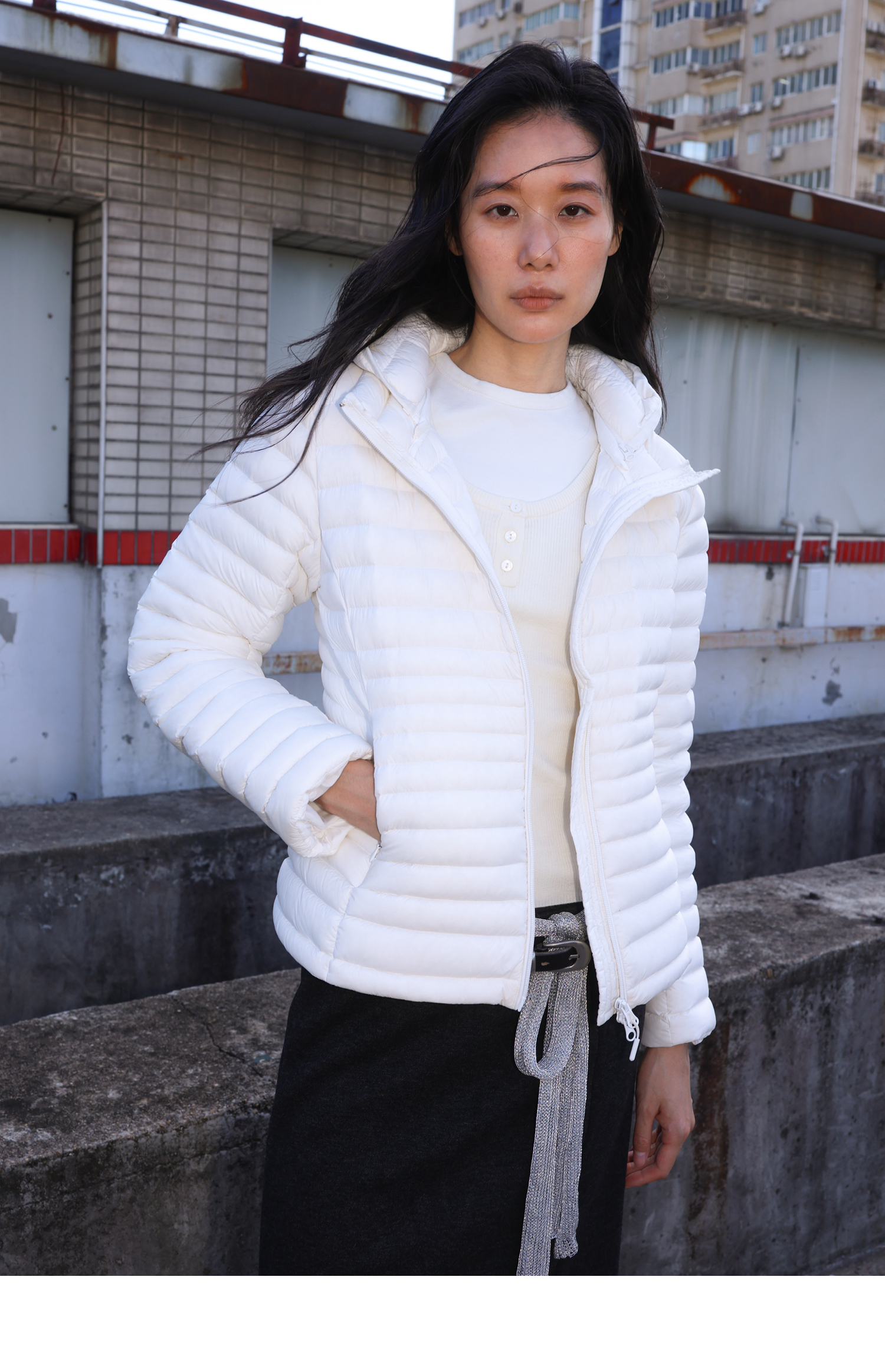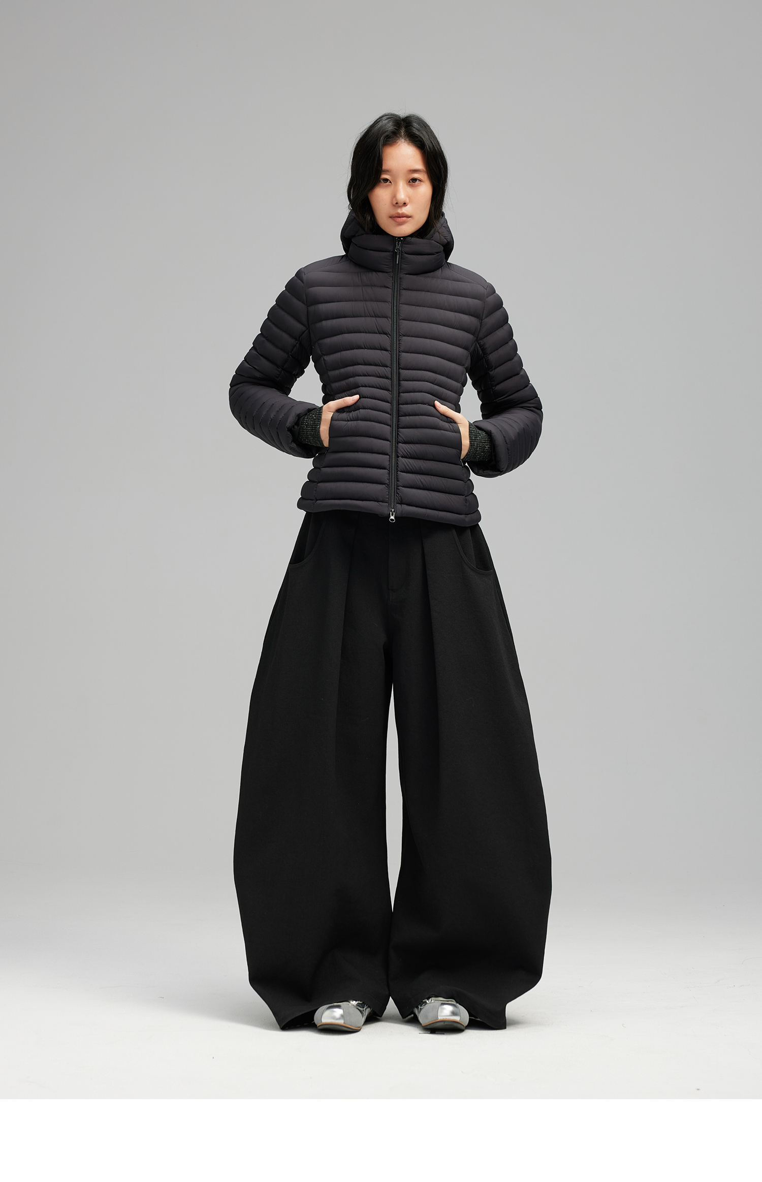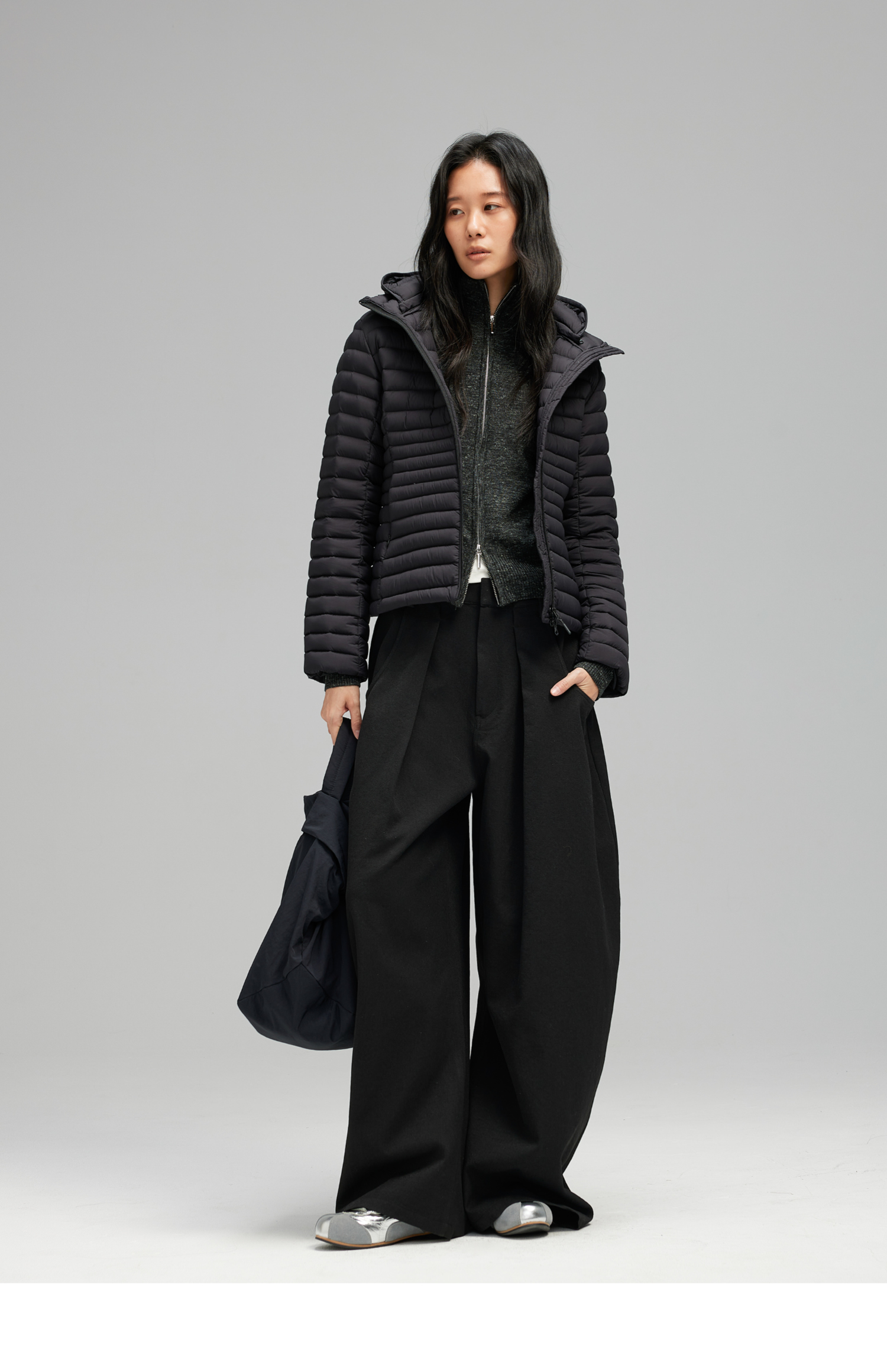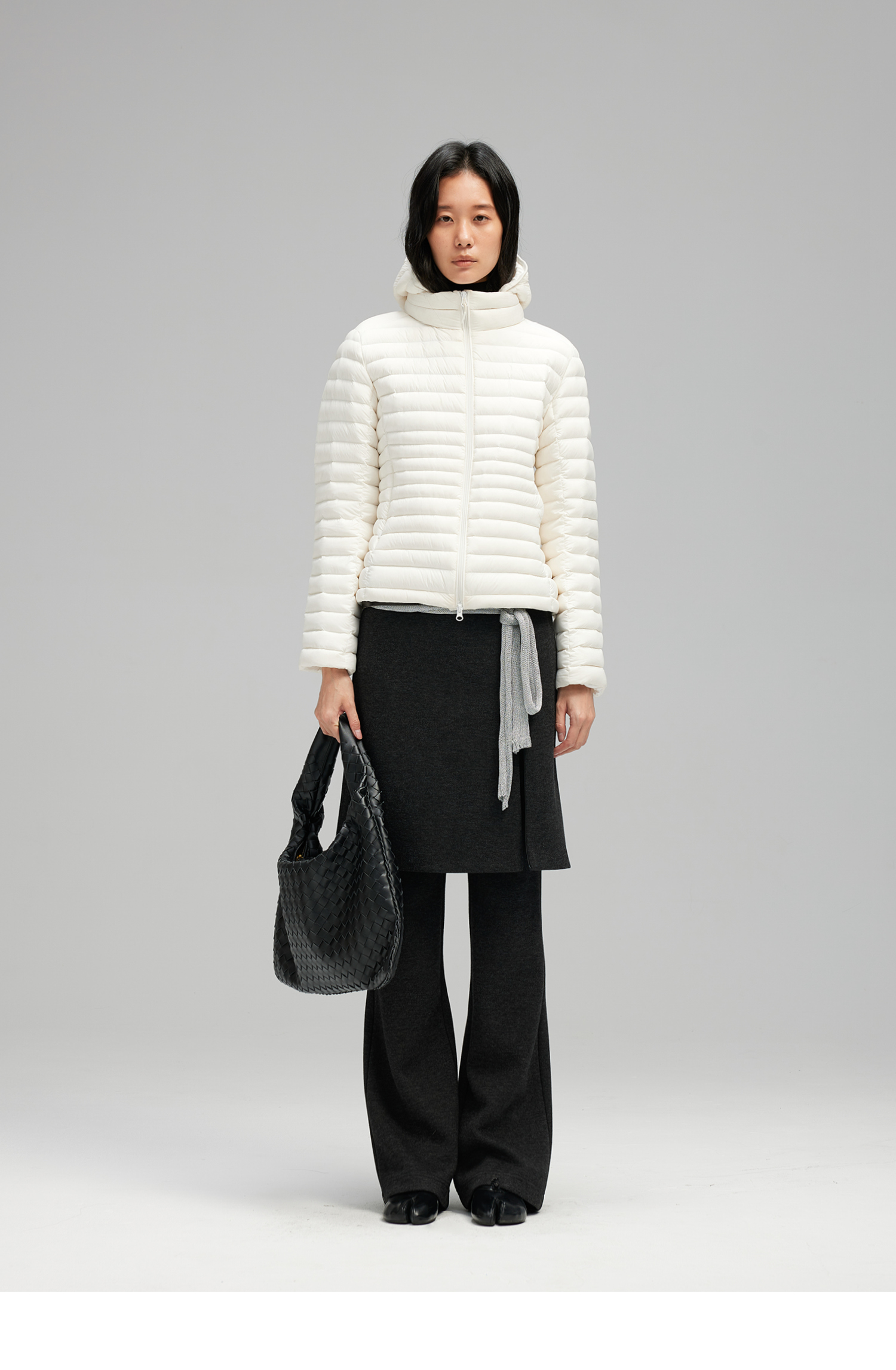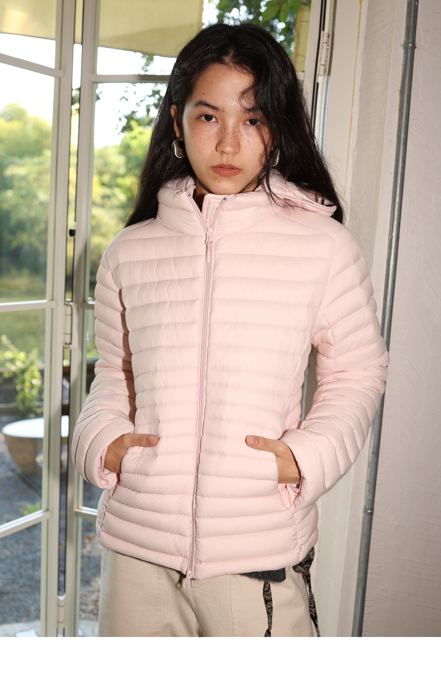 素舶 90白鸭绒纸片人超轻保暖连帽可收纳沙漏收腰修身排骨羽绒服