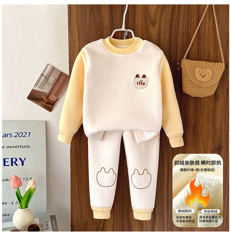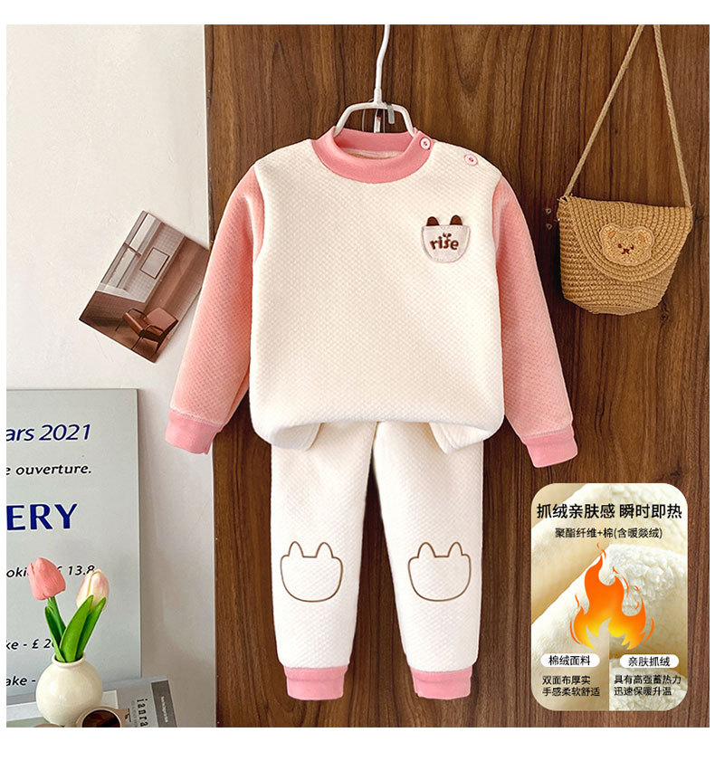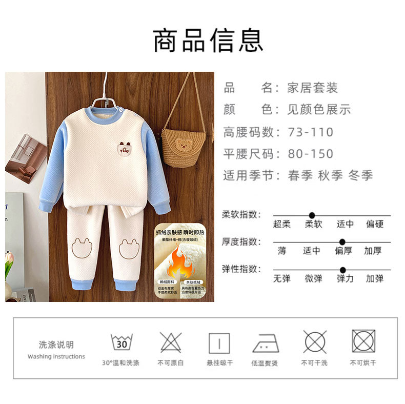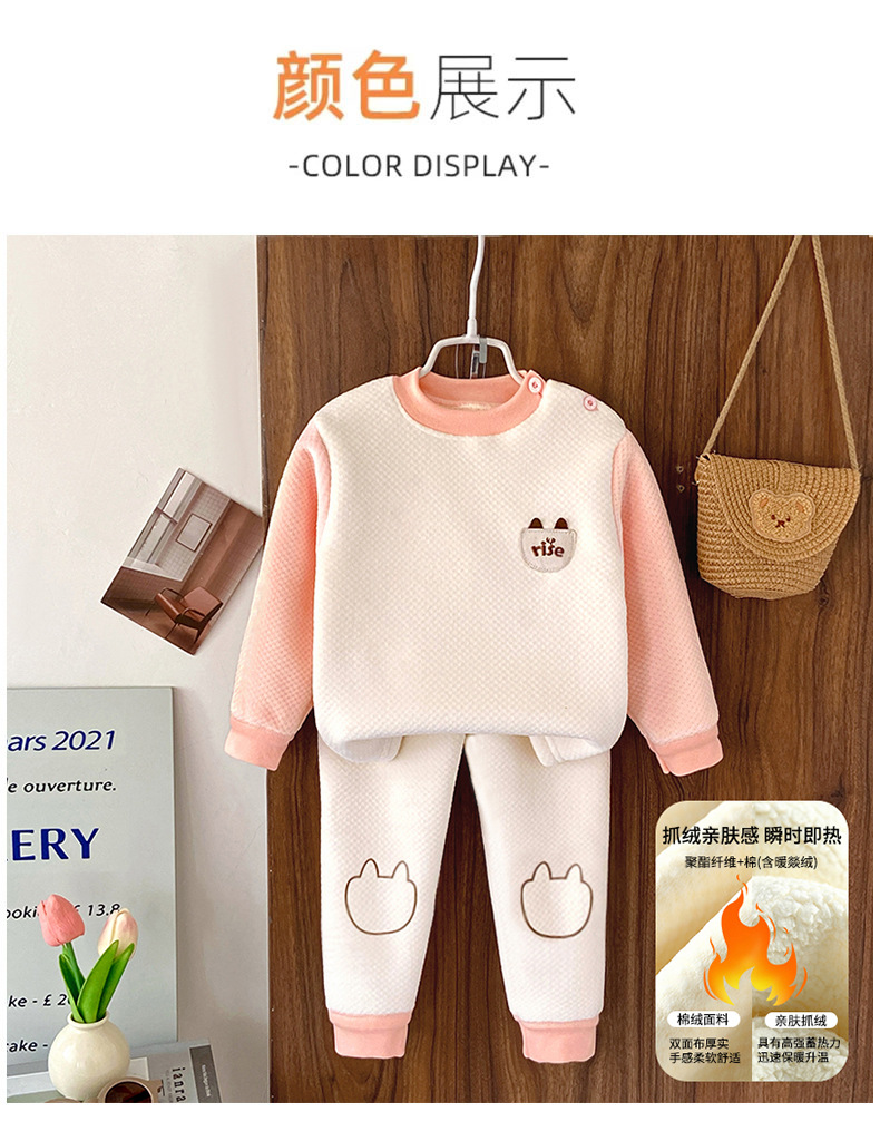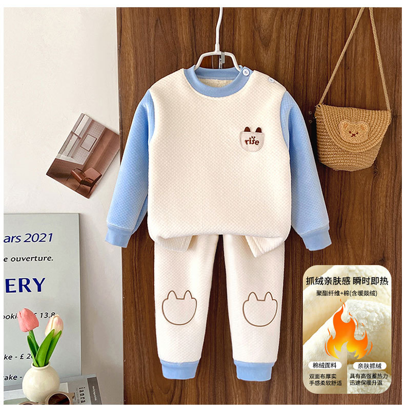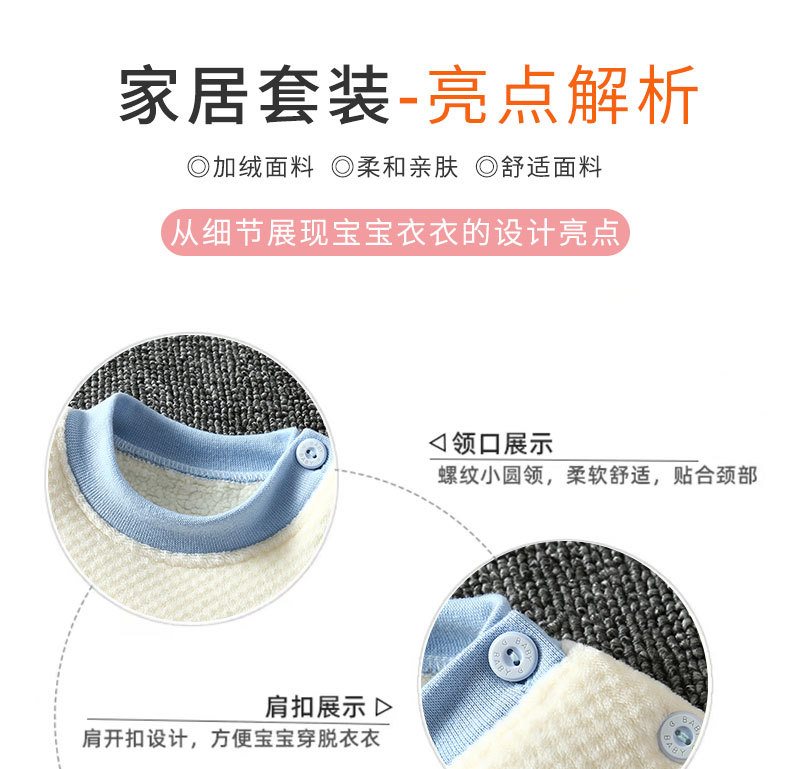 【儿童秋冬款双面绒家居服】男童保暖家居服套装女童加绒加厚童装宝宝两件套
