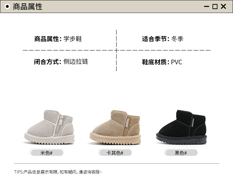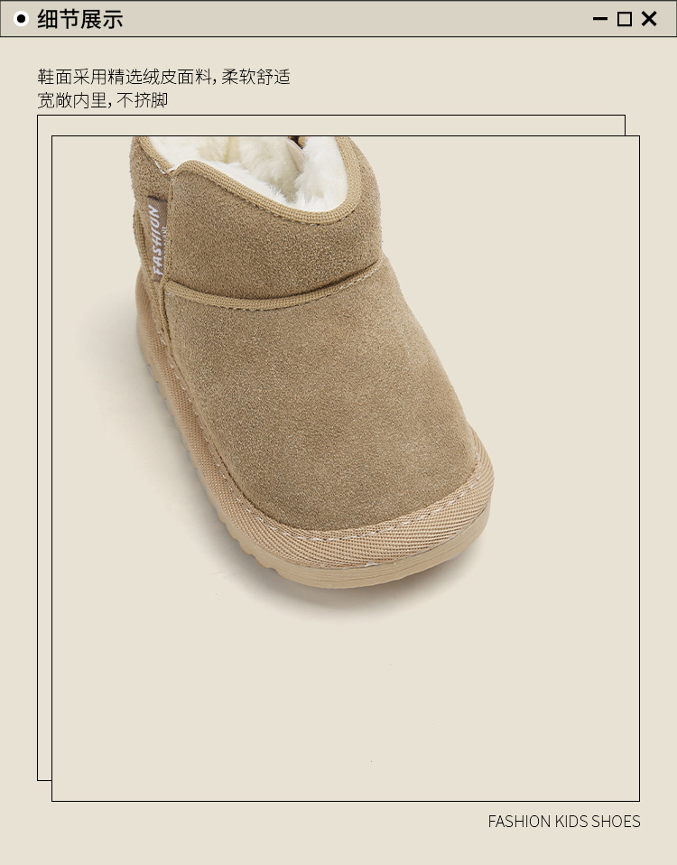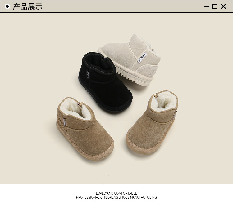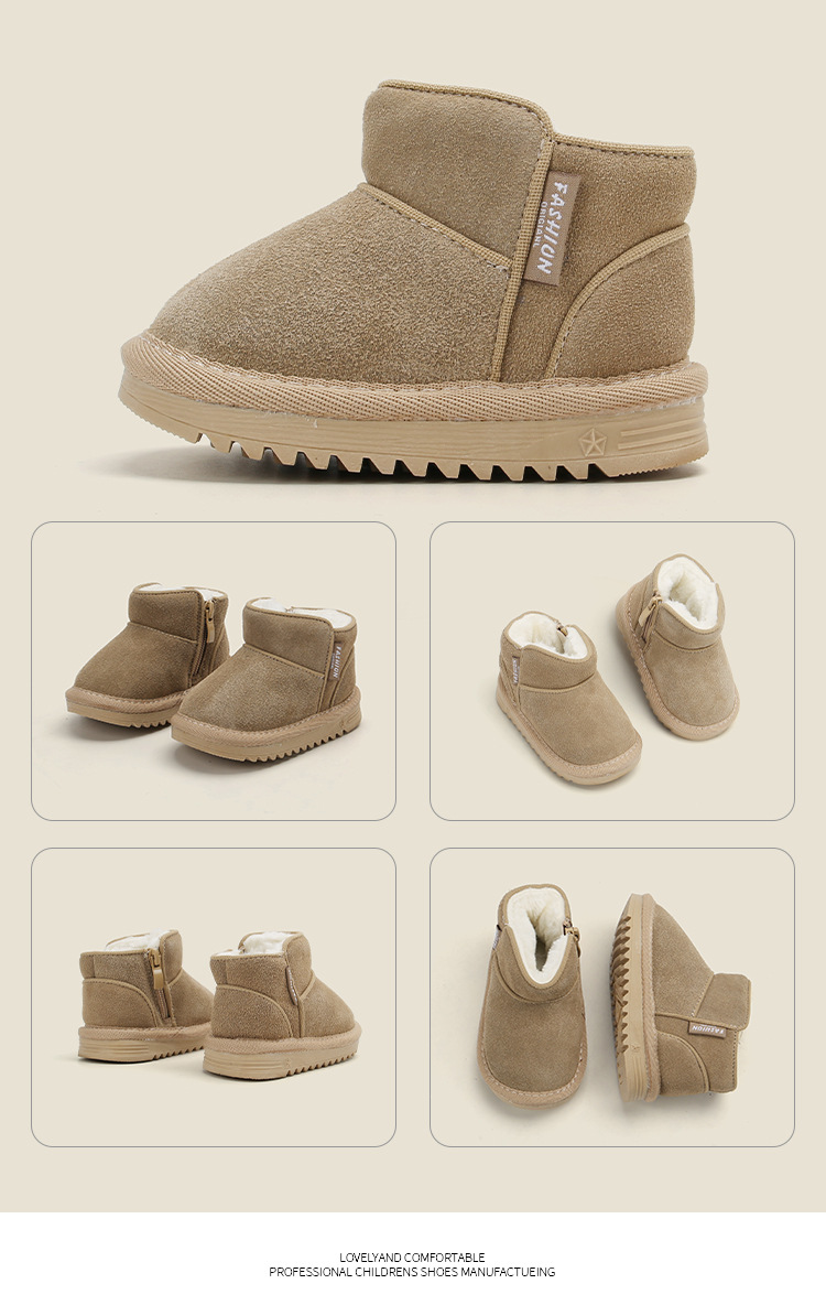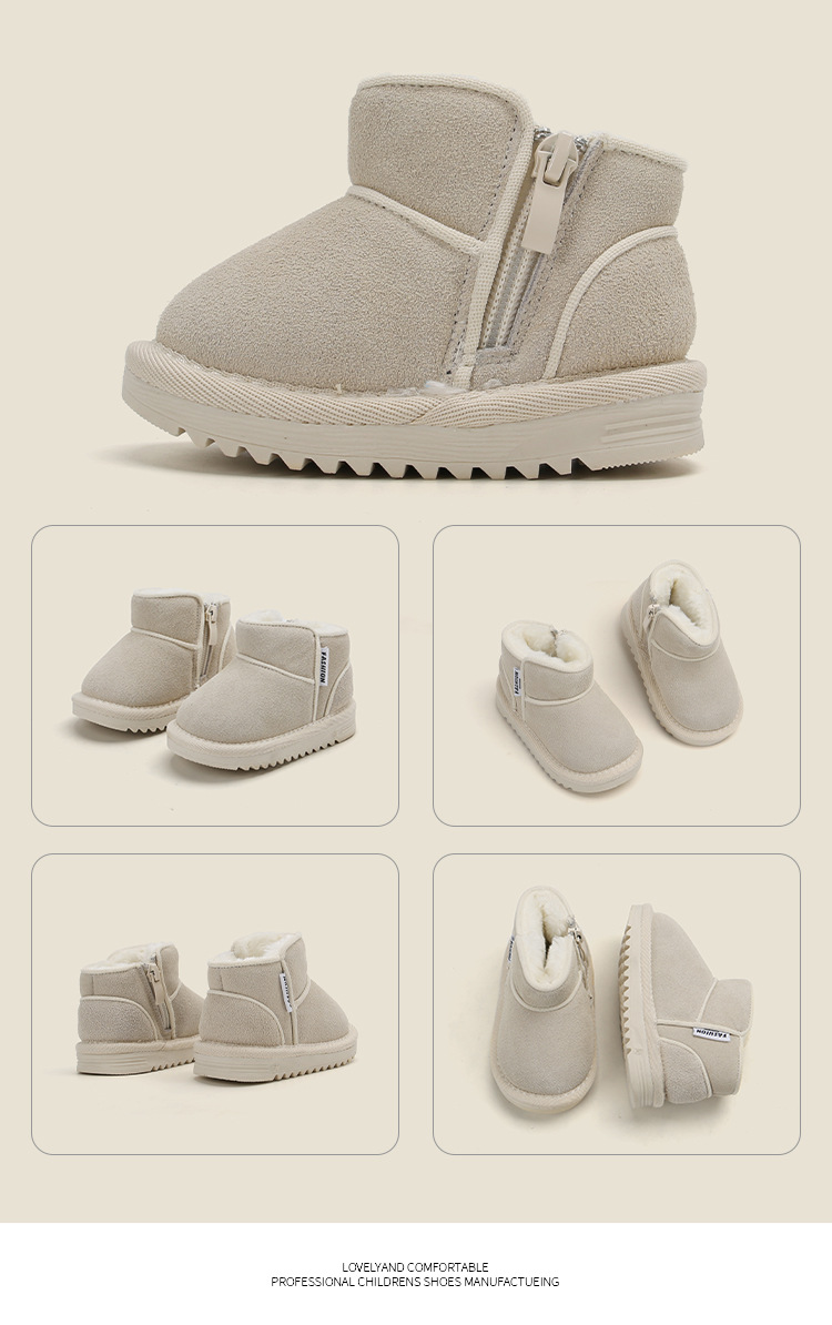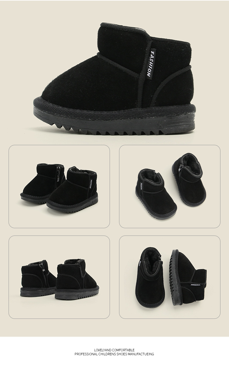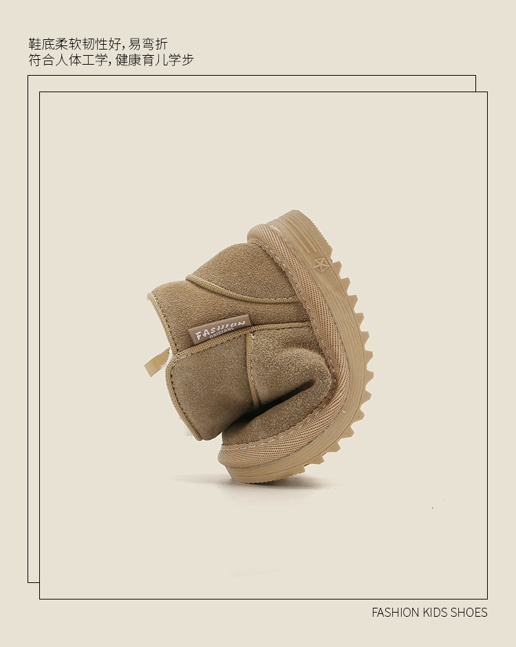 麦布熊儿童鞋纯色雪地靴学步鞋子男童短靴子冬季加绒女宝宝鞋韩版