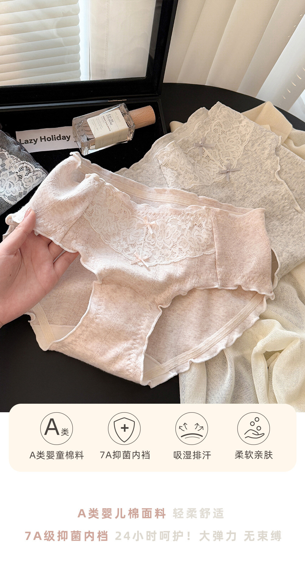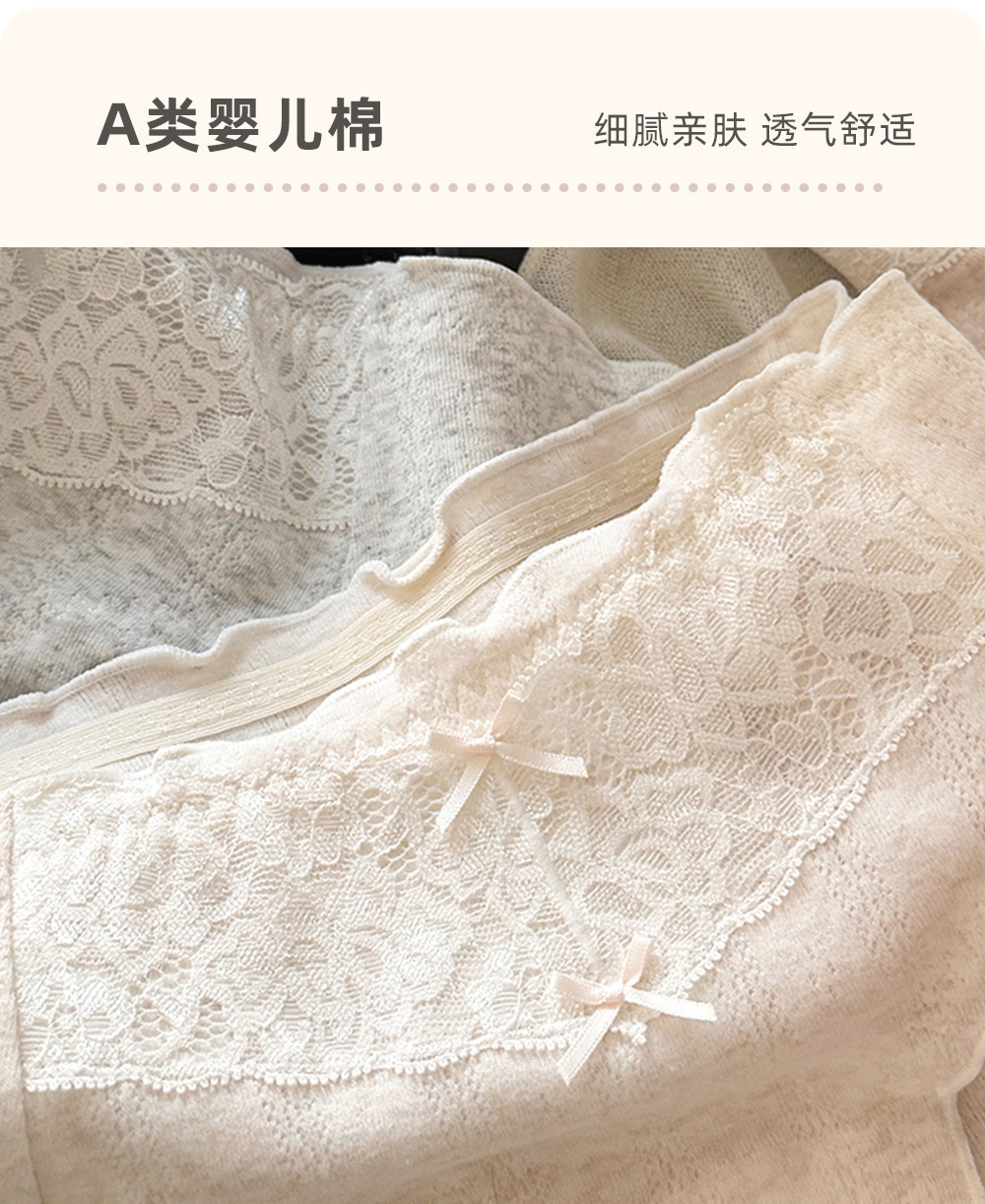 【24小时呵护❗️纯欲纯棉内裤】A类婴儿棉面料,细腻亲肤,轻柔透气舒适,吸湿排汗,透气抑菌,加长裆A类婴儿棉蕾丝女生内裤纯棉内裤QQ