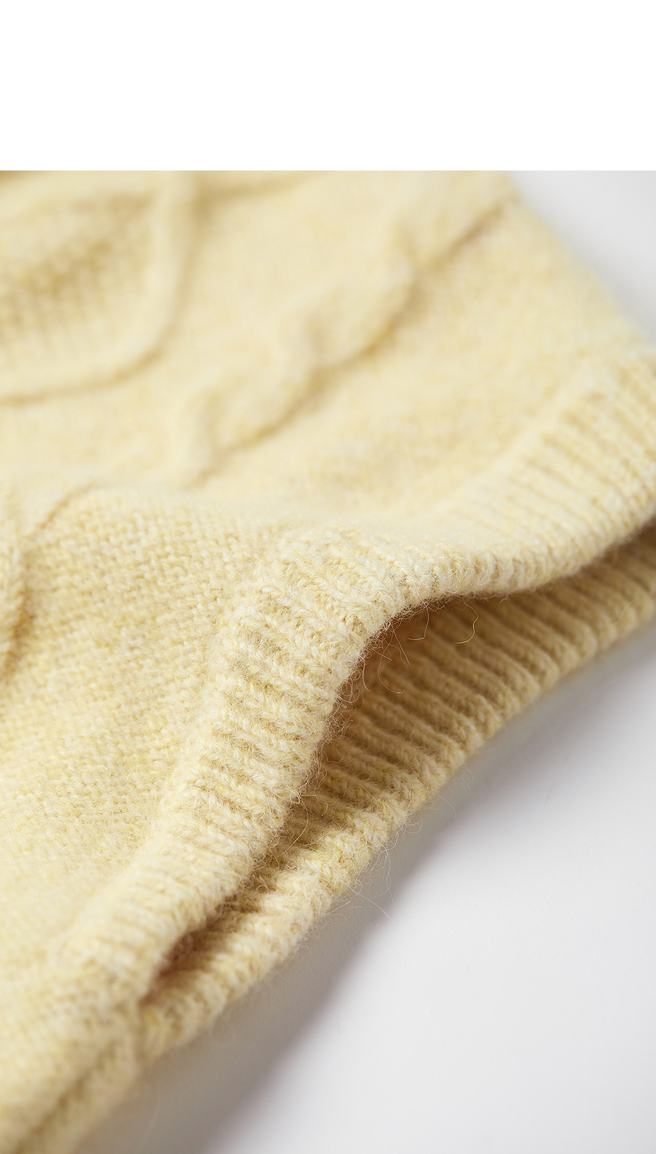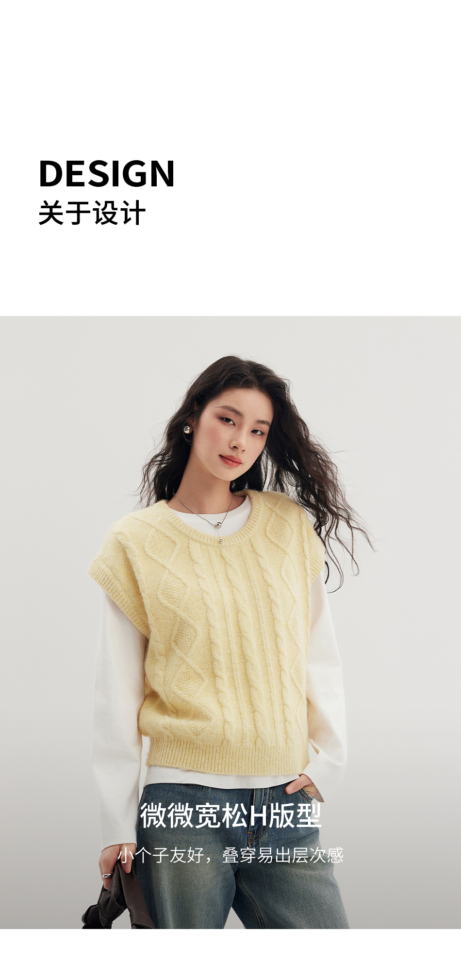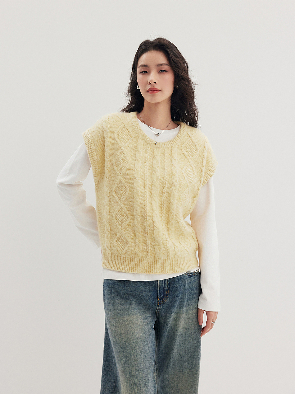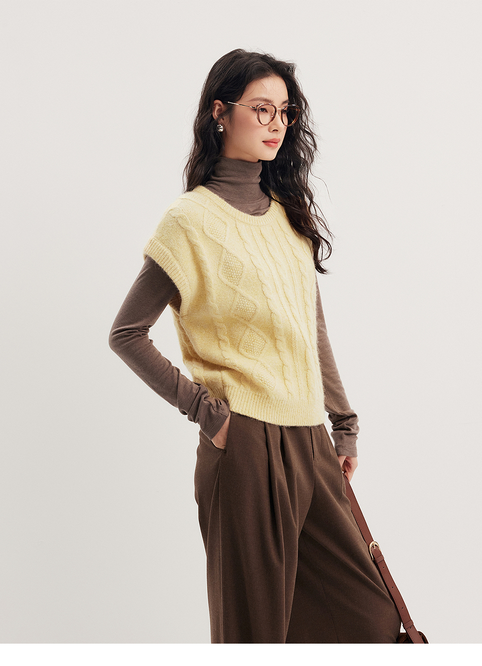 棉仓3576990010-重磅羊驼毛绞花编织马甲——蛋奶黄