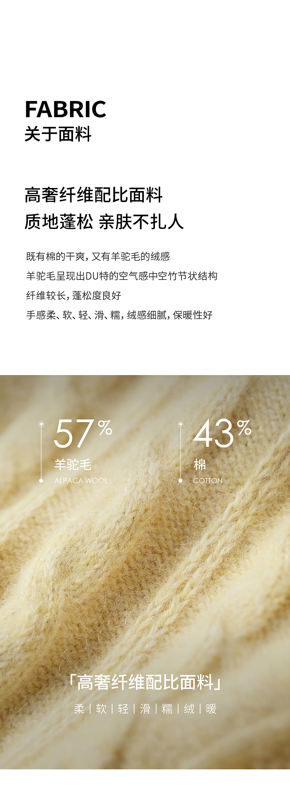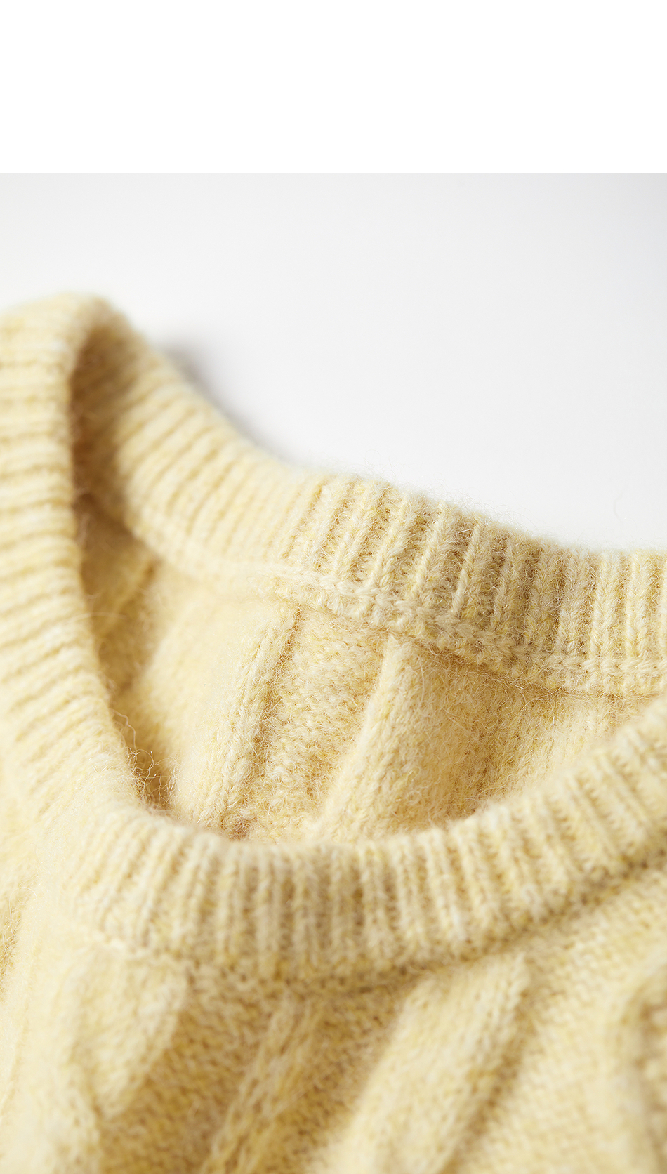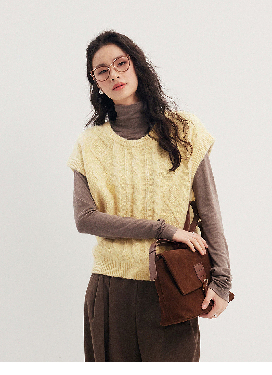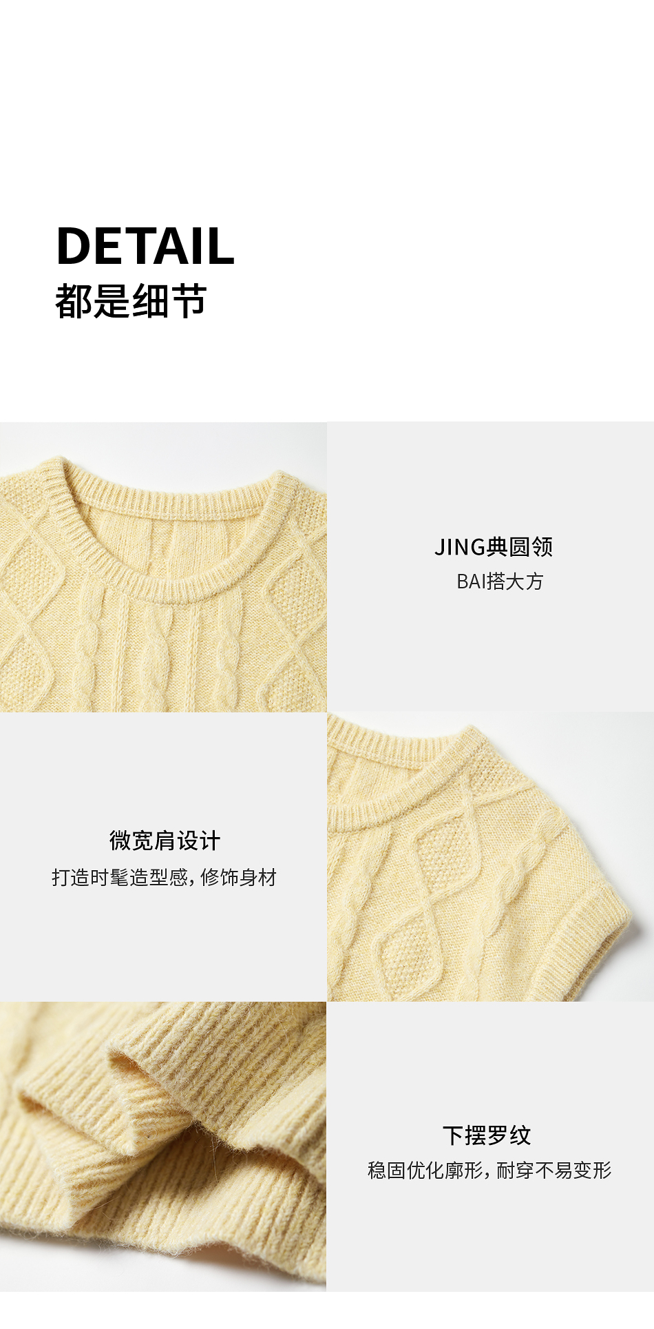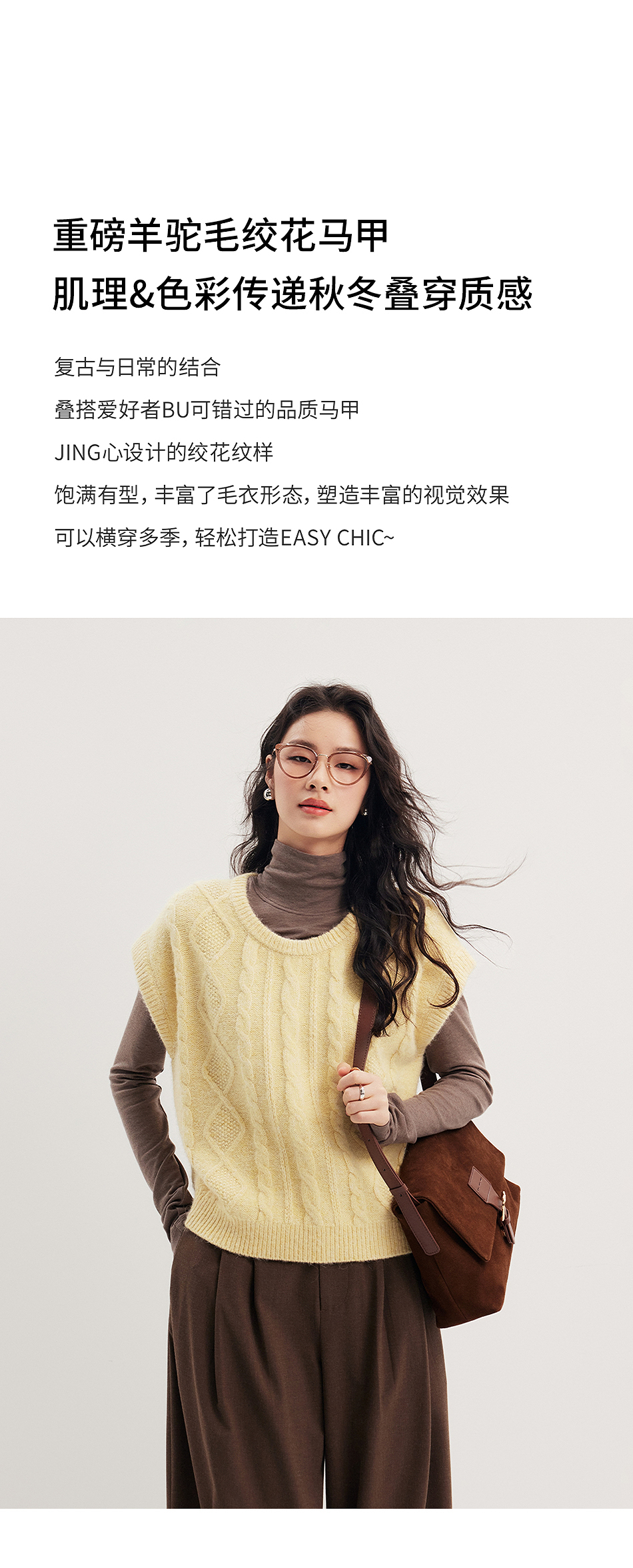 棉仓3576990010-重磅羊驼毛绞花编织马甲——蛋奶黄