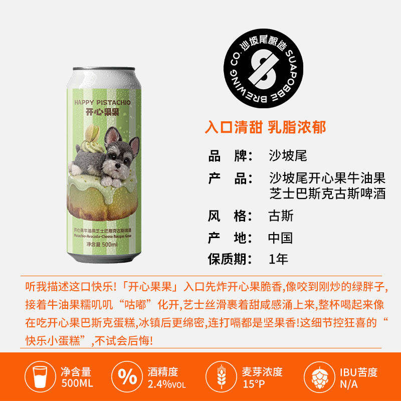 沙坡尾开心果果·开心果牛油果芝士巴斯克古斯啤酒 500ml