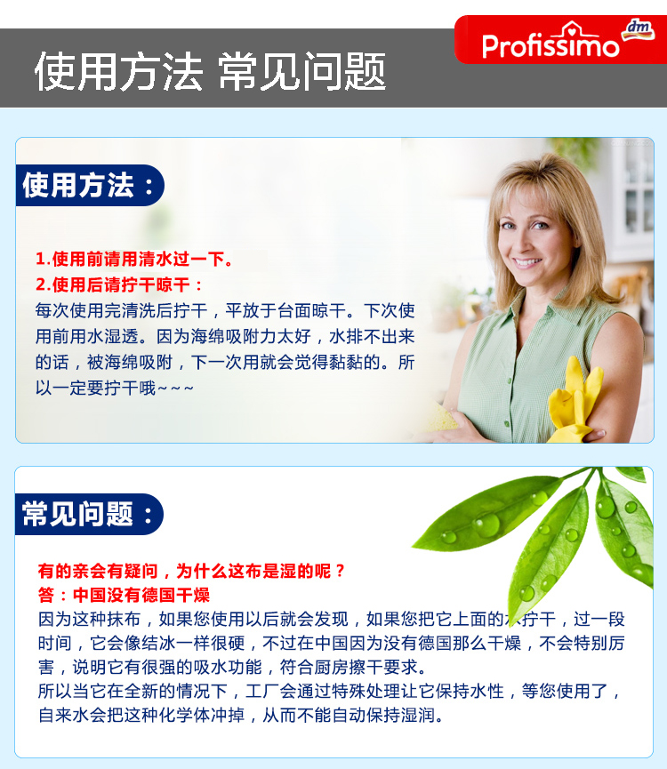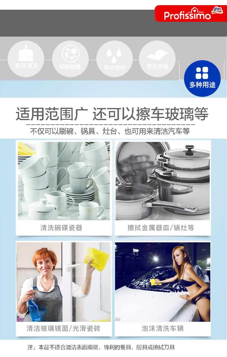 【5包】德国清洁抹布 原装进口Dm profissimo多功能清洁抹布不沾油双面 5片装