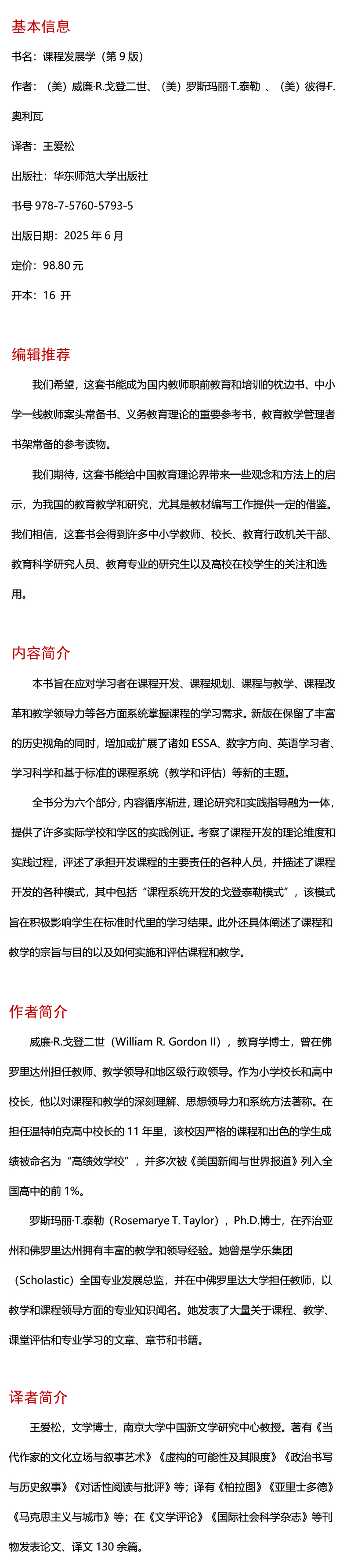 课程发展学 第9版 教育治理与领导力丛书 培生教育集团引进