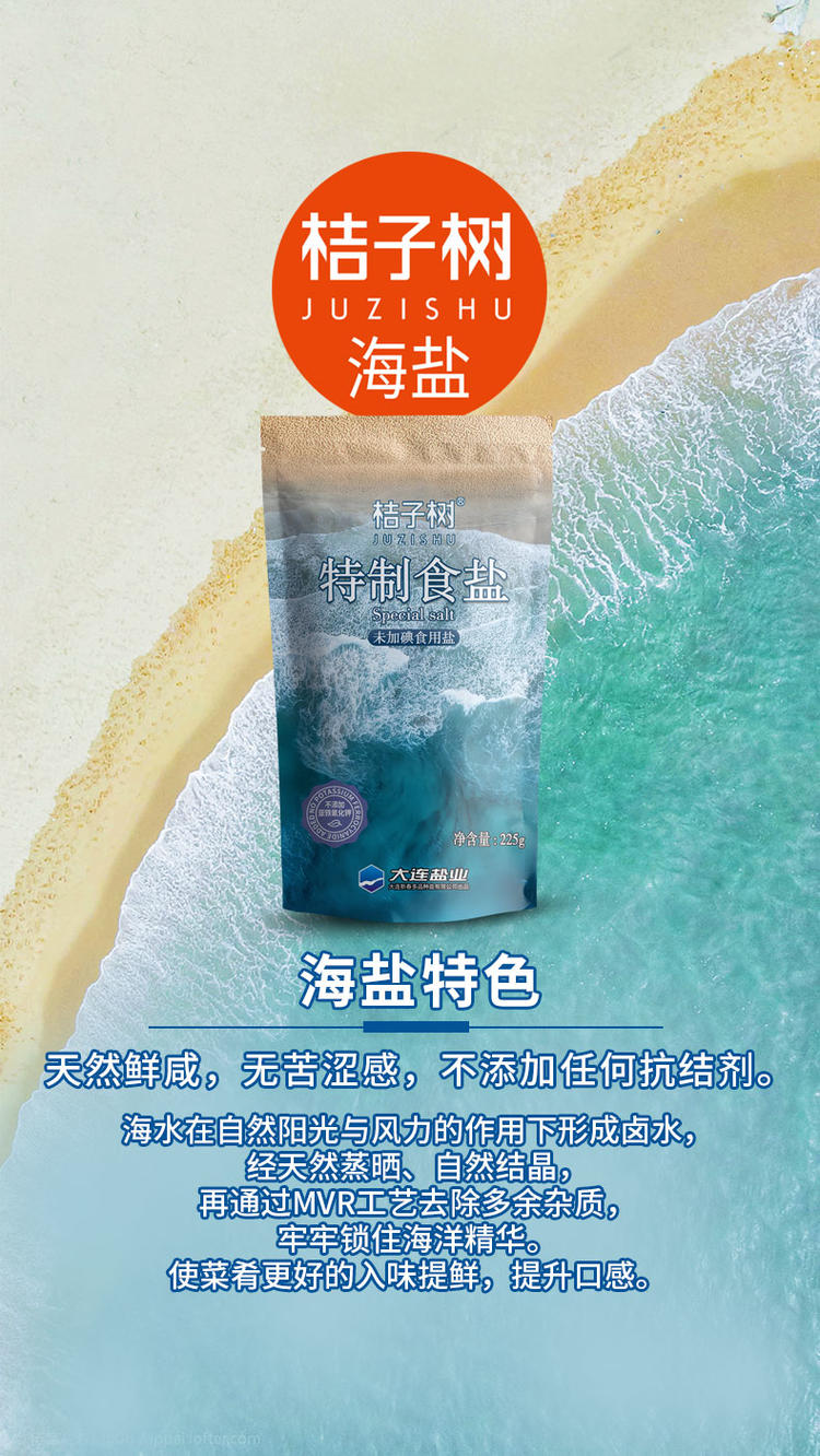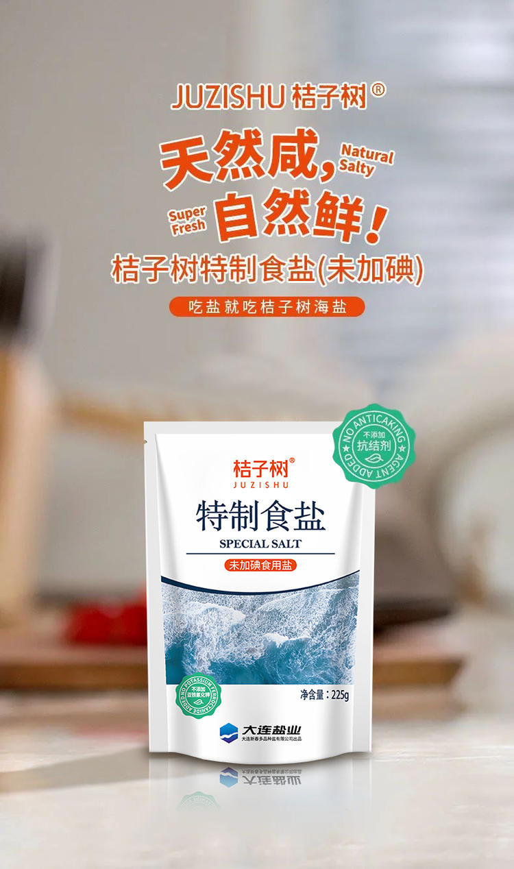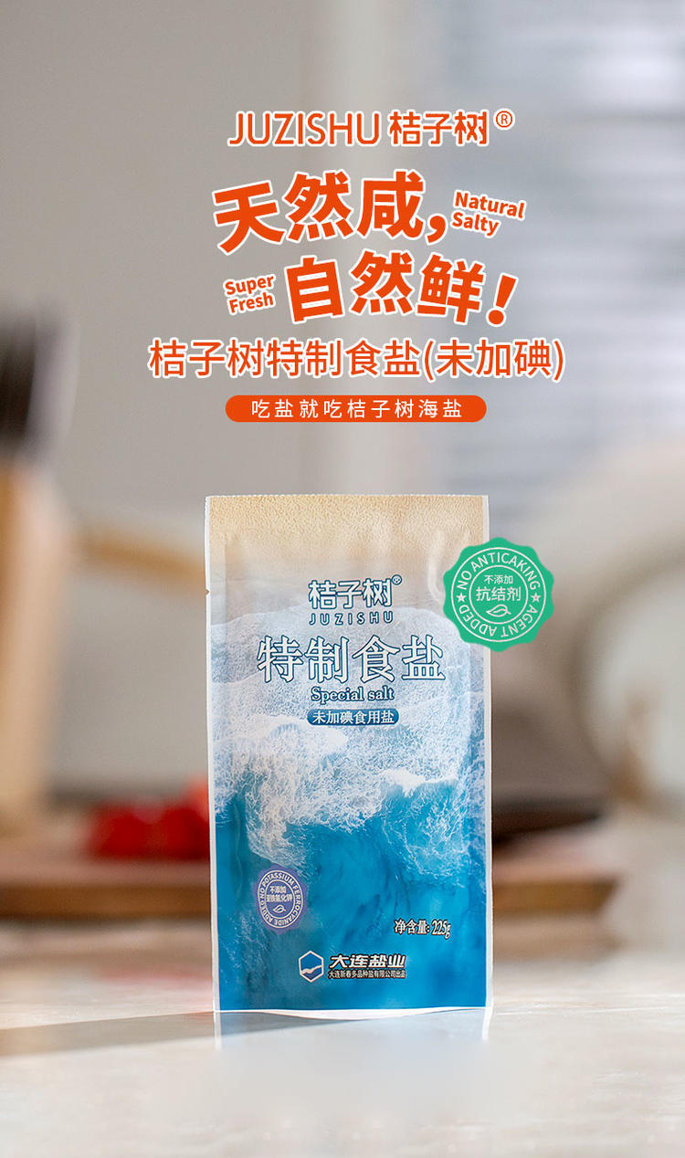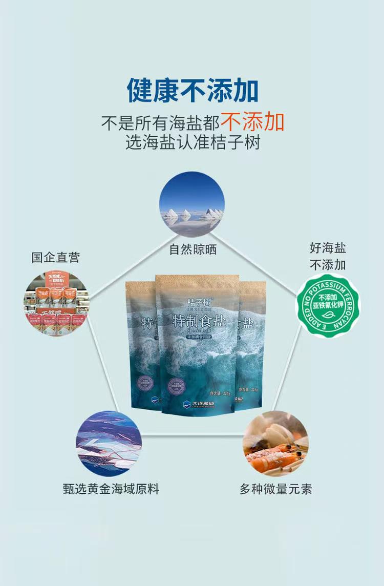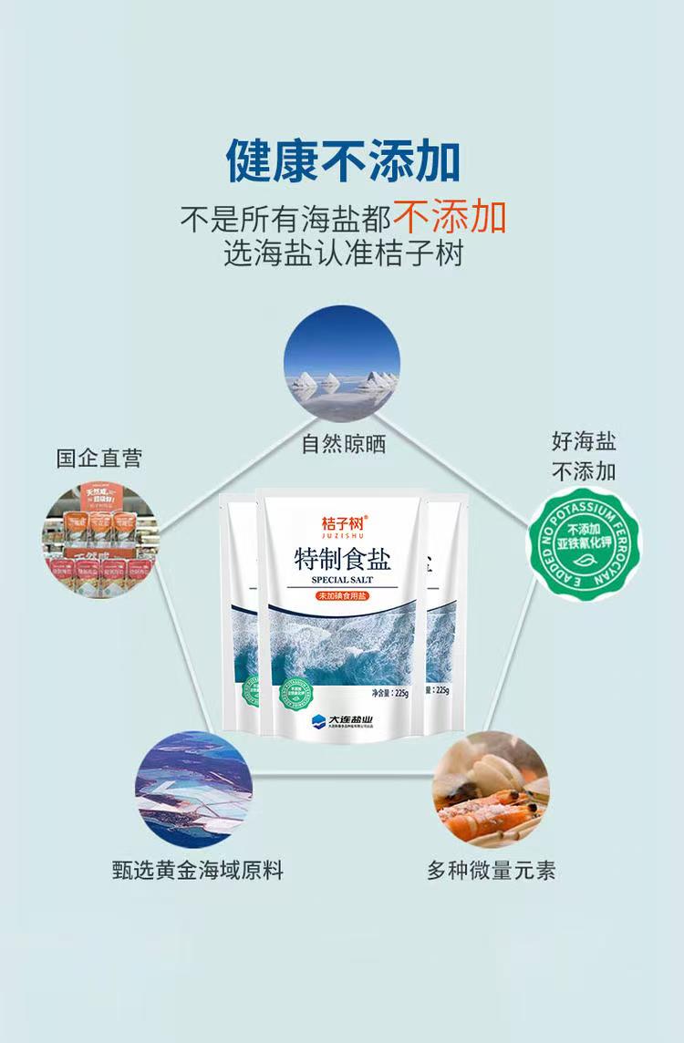 【桔子树特制食盐225g*10袋】原料纯净 自然结晶(未加碘食用盐)家用必备调味料