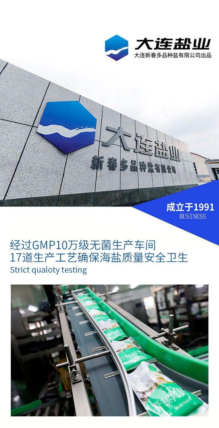 选自复州湾黄金海域的天然海盐,原料纯净,自然结晶;