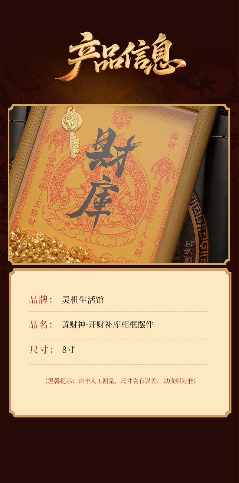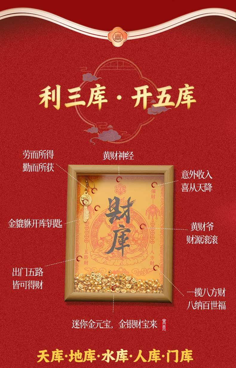 灵机生活馆2026黄财神·开财补库相框摆件幸运物家居办公室开业