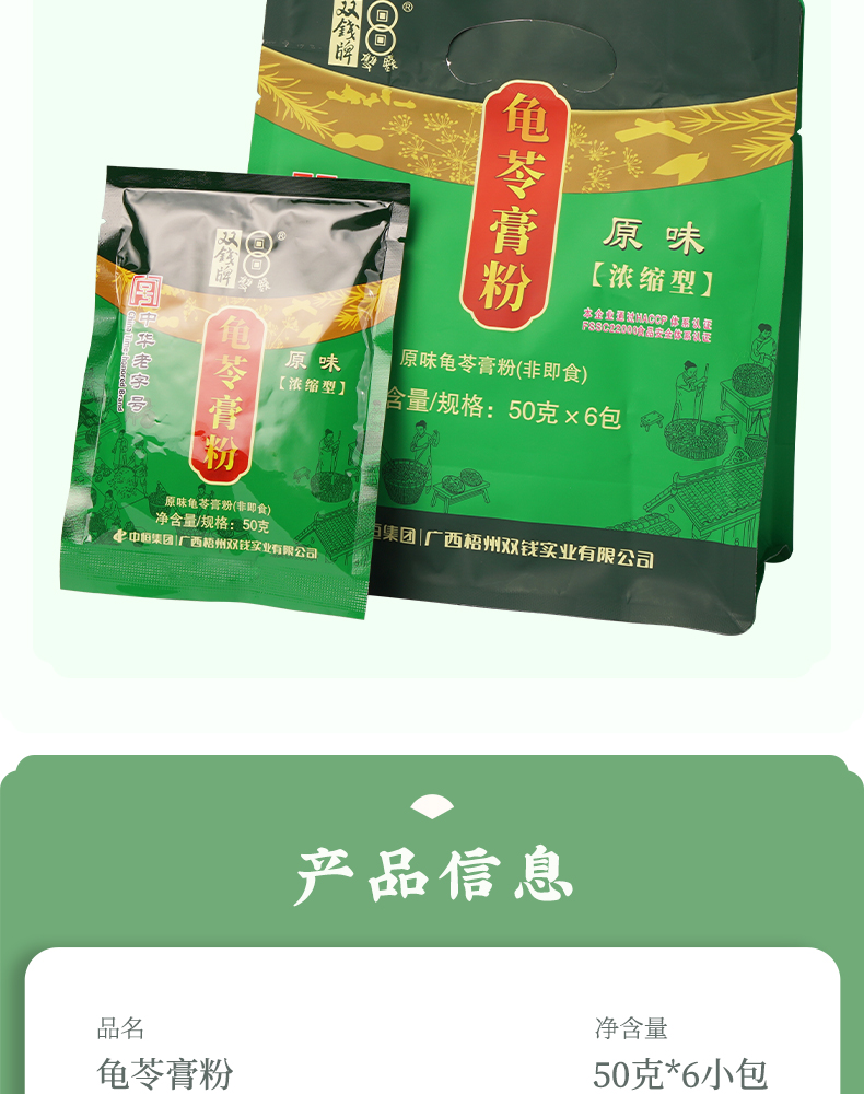 广西梧州双钱龟苓膏粉 原味浓缩型袋装300g/袋 50g* 6小包(20袋*100箱装)