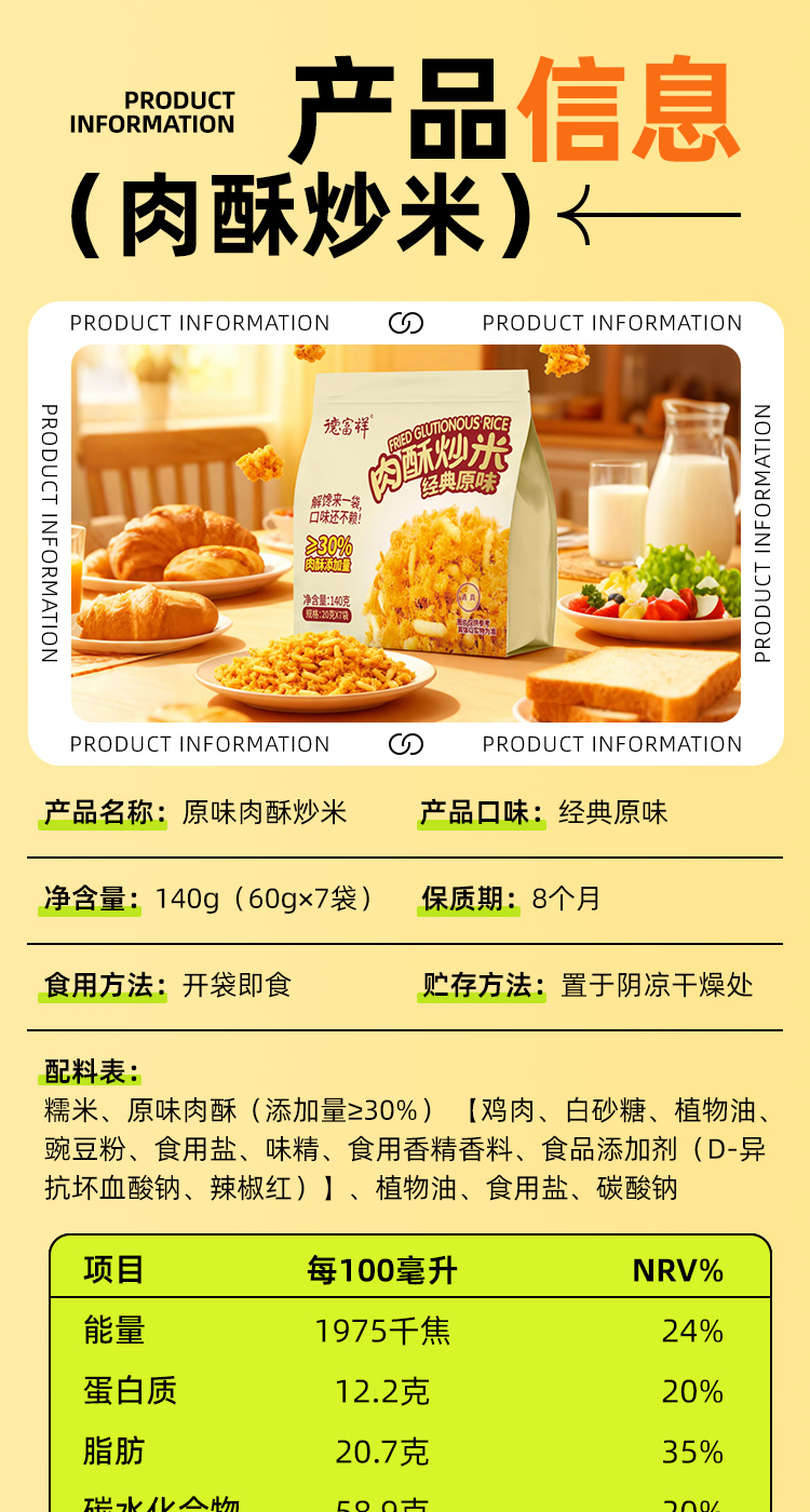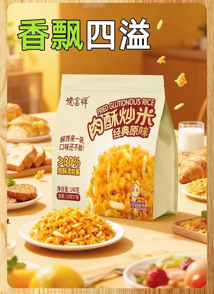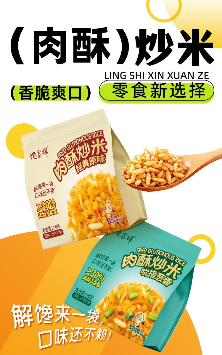 德富祥清真解馋零食独立包装原味葱香肉松炒米140g*2袋(可备注口味)