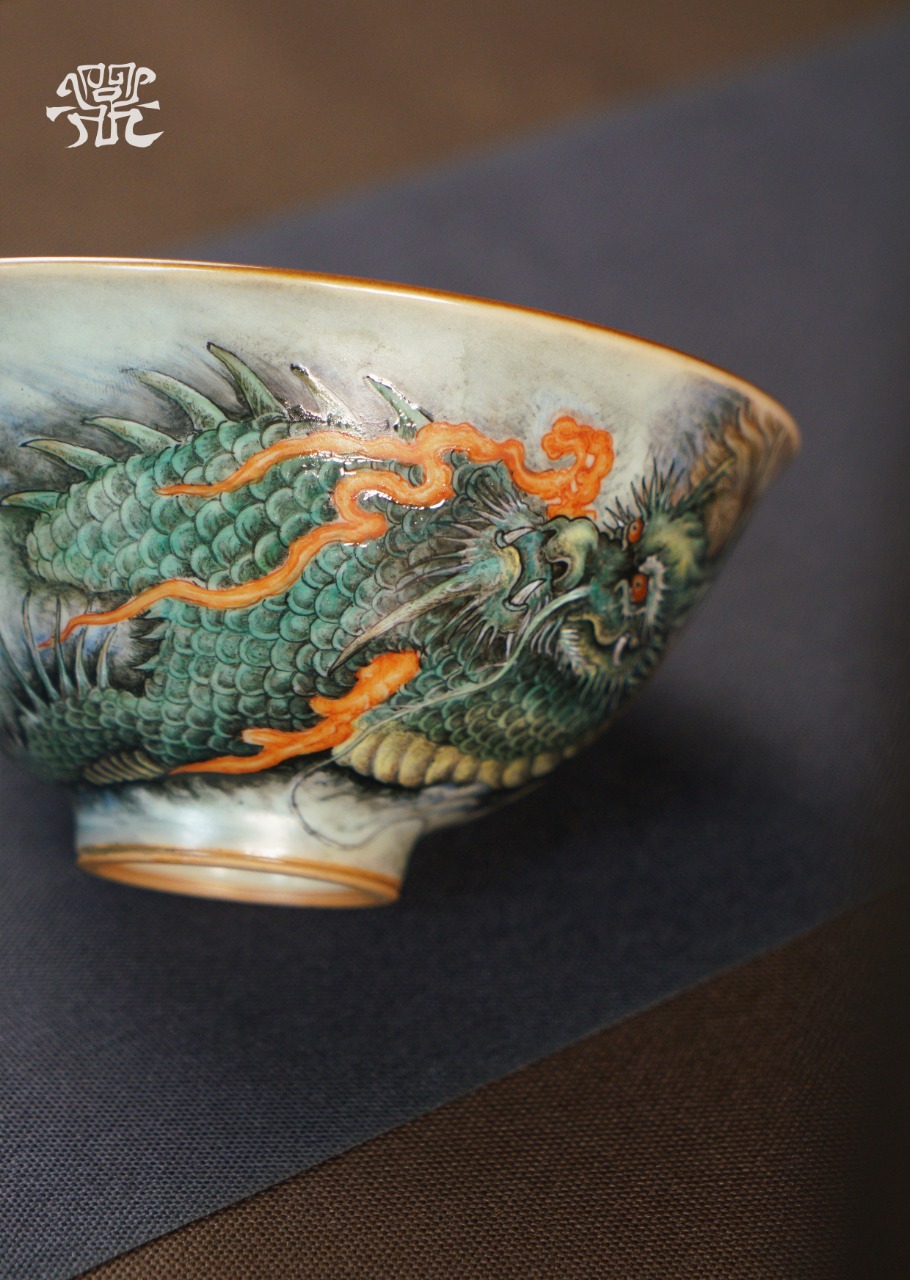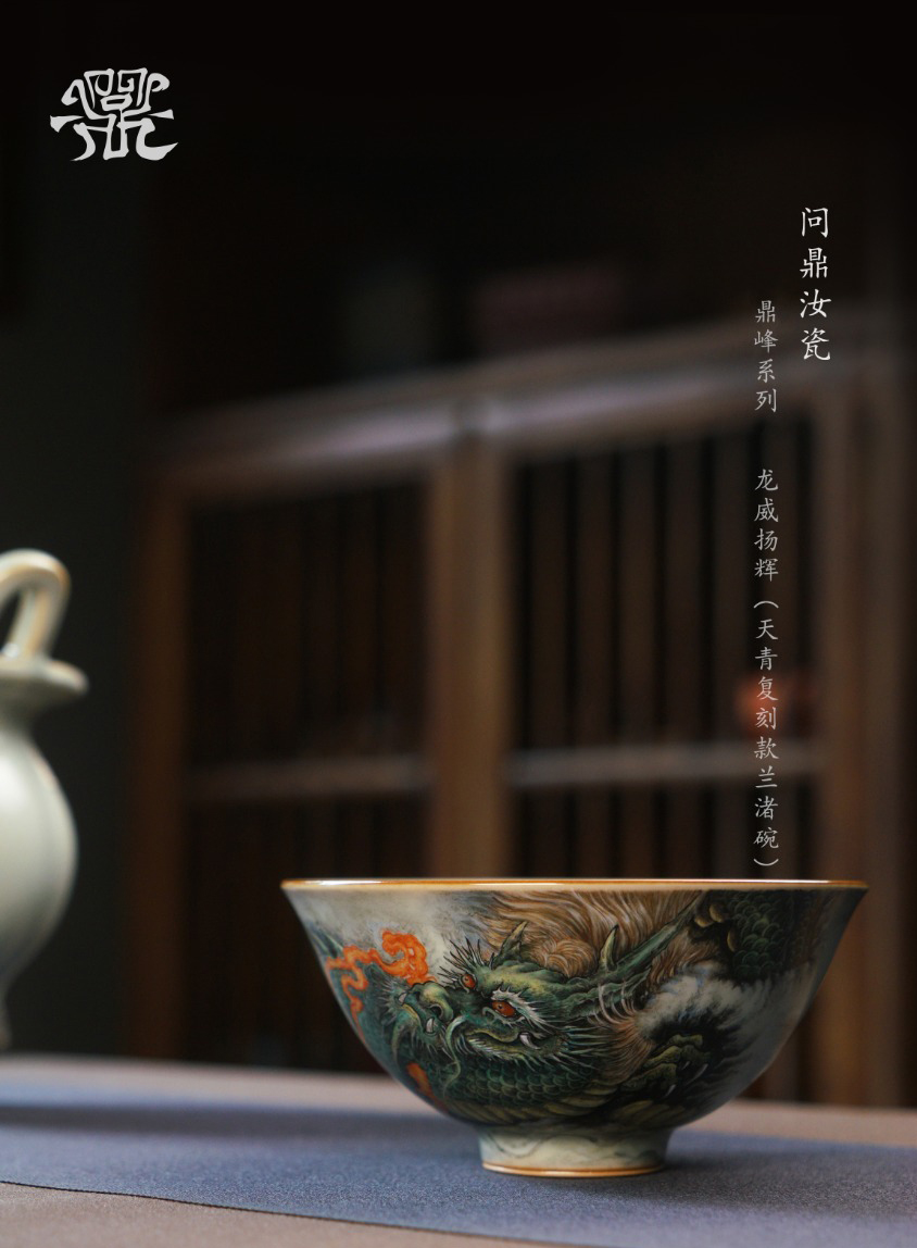 问鼎汝瓷鼎峰系列天青复刻款兰渚碗(龙威扬辉)