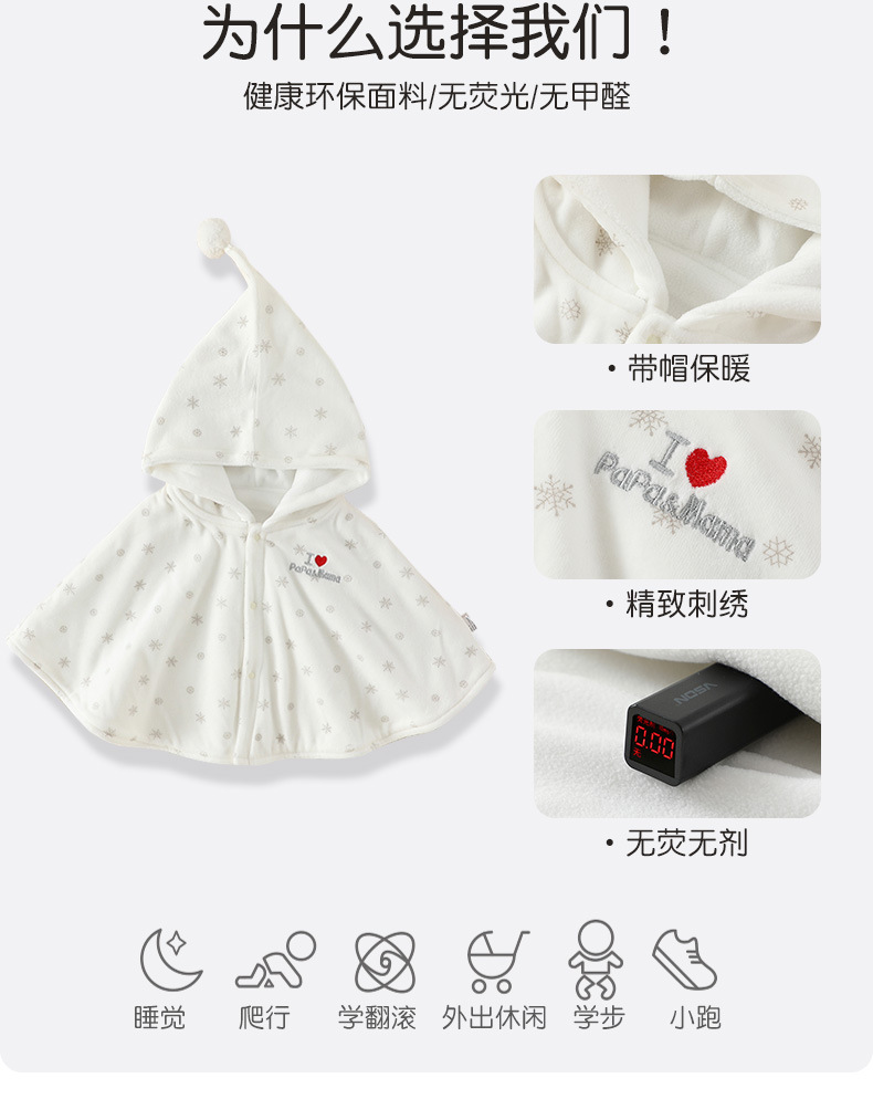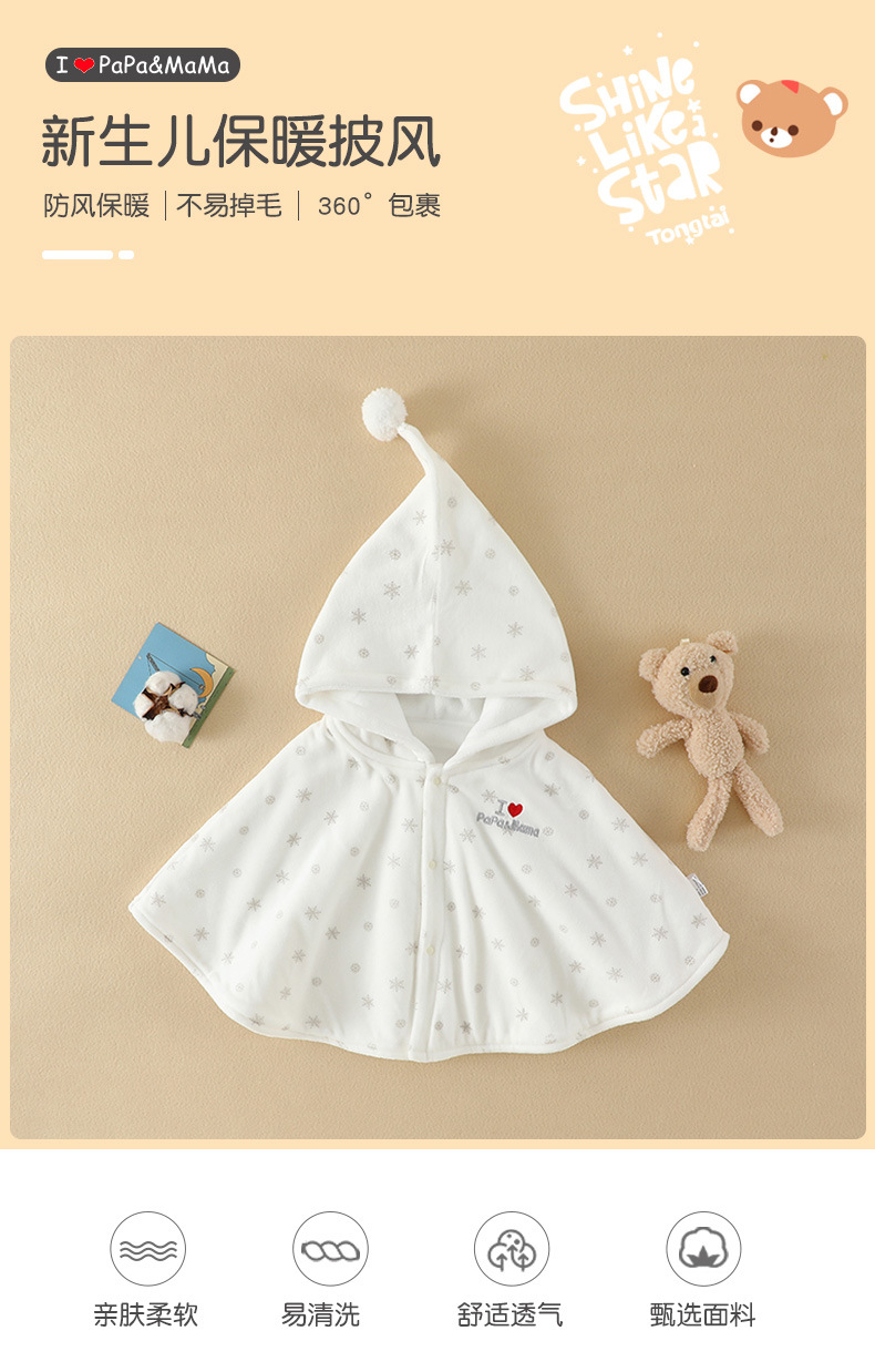 【新生儿保暖披风】婴儿衣服披风天鹅绒连帽秋冬装可爱范连帽加厚加绒防风斗篷外出服