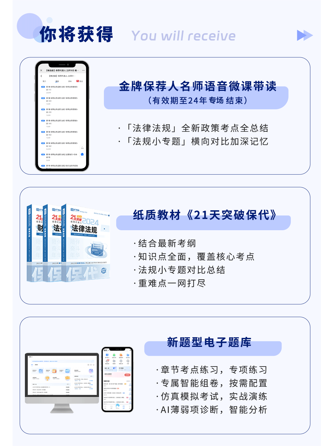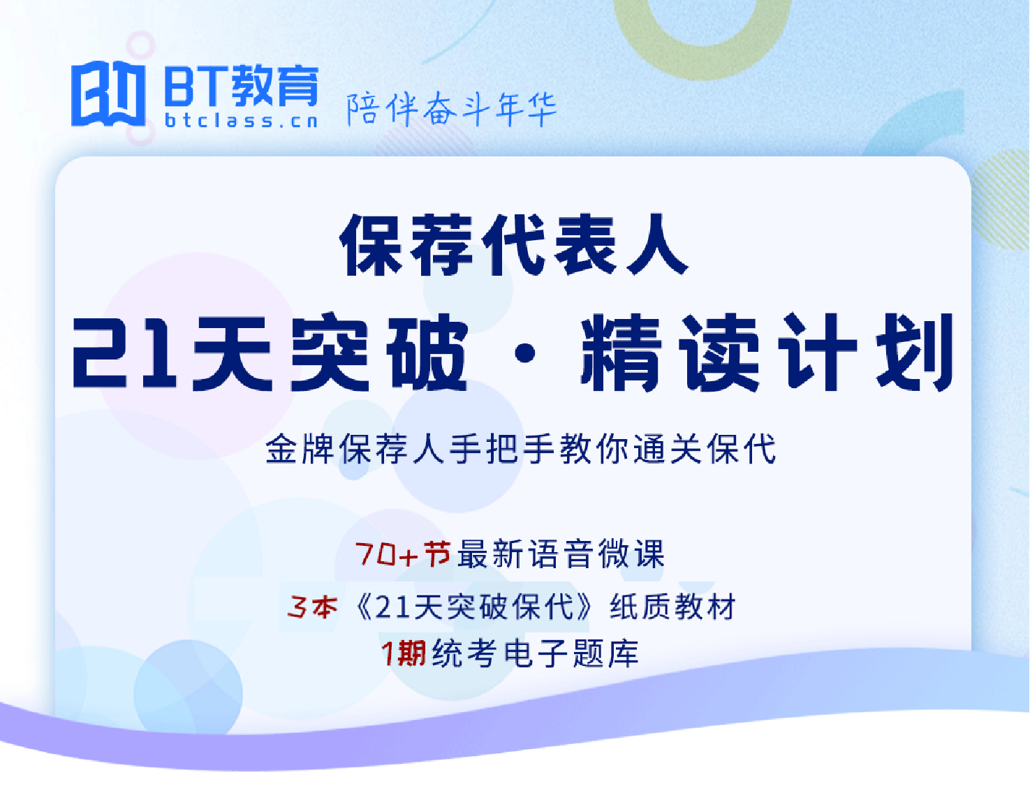 注意!!24年《21天突破保代》系列纸质讲义印刷时间为2024年3月,后续法规变动更新版本为电子版,购买后可在“课程资料区”下载最新电子版讲义!