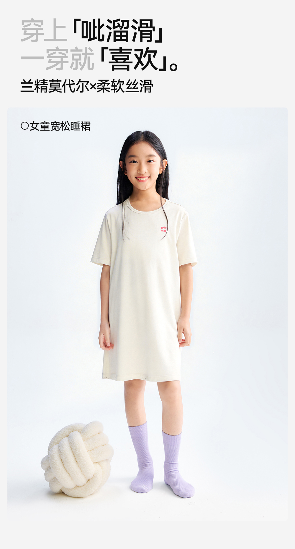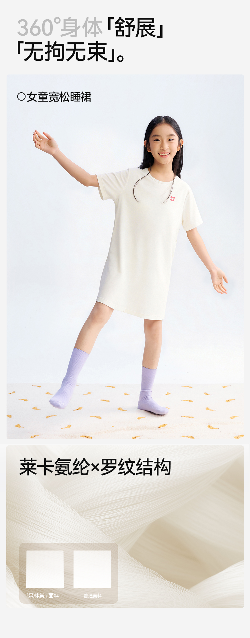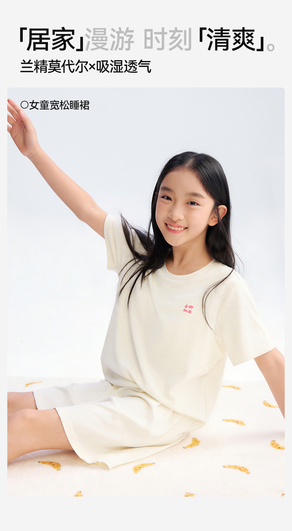 【女童家居睡裙】森林棠26夏款兰精莫代尔50S顺滑高弹女童带胸垫宽松睡裙