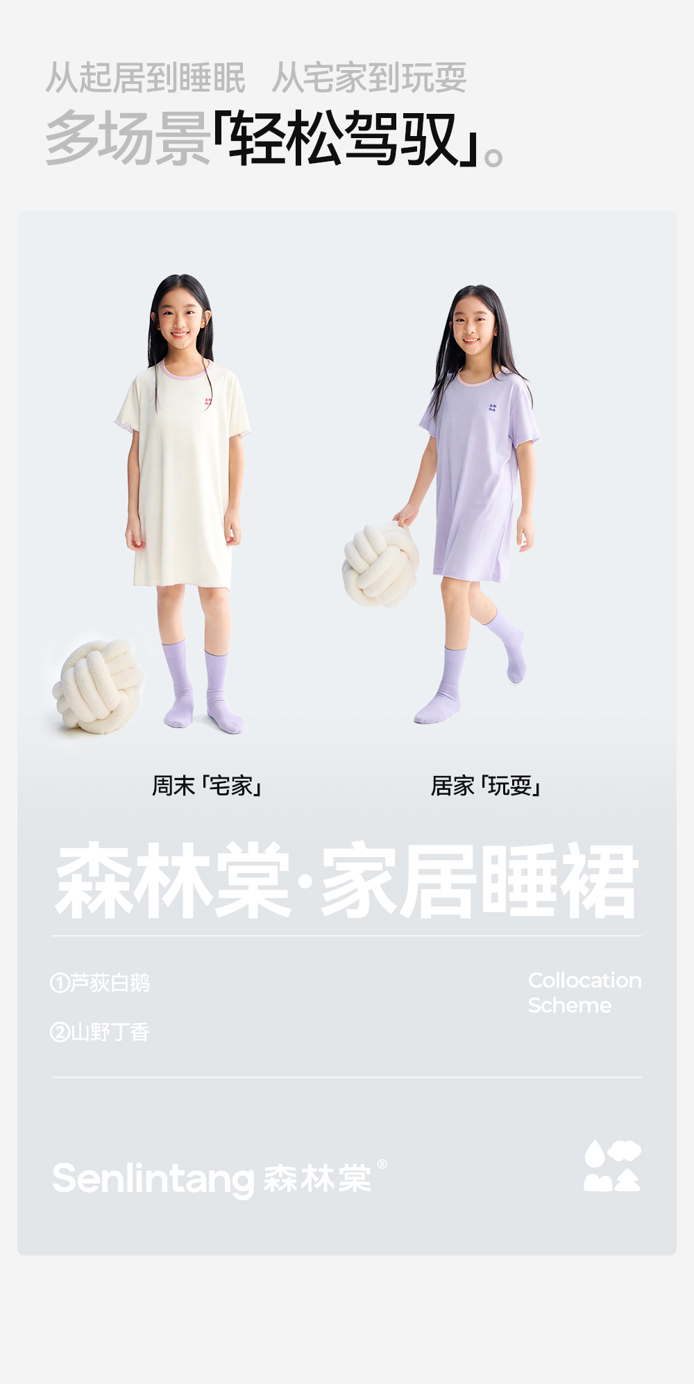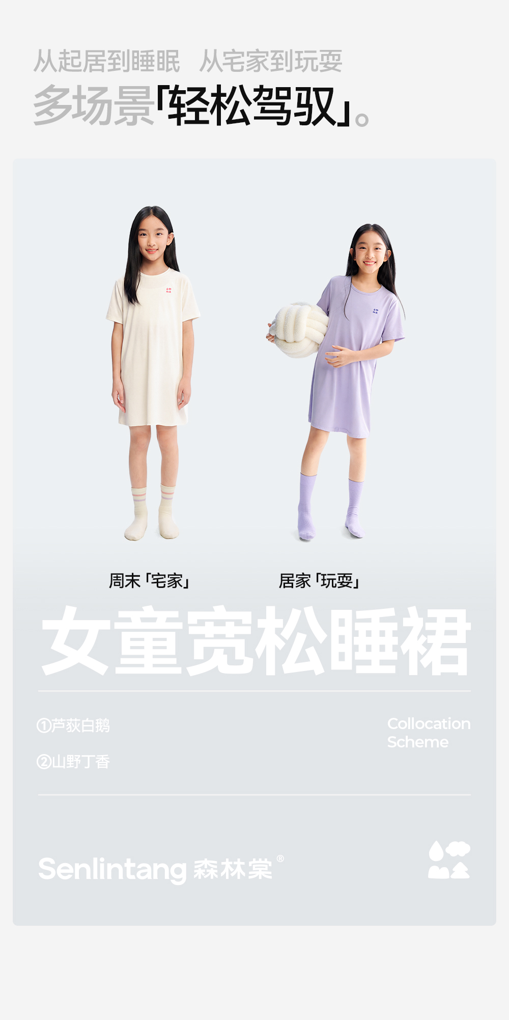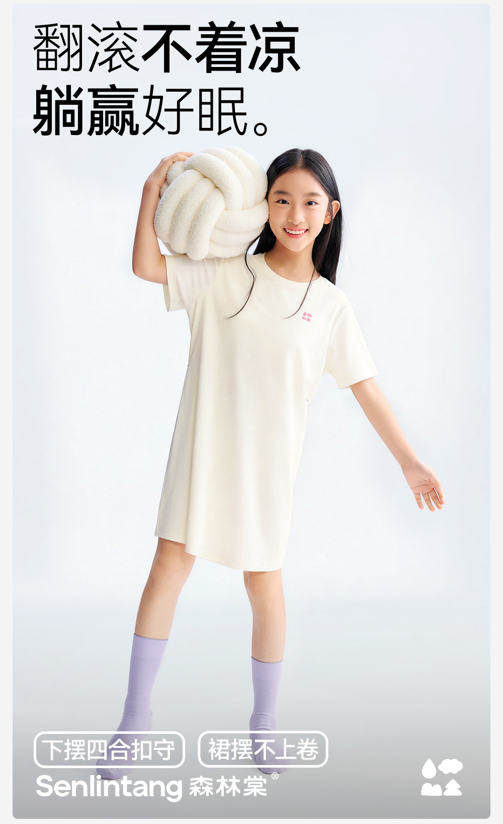 【女童家居睡裙】森林棠26夏款兰精莫代尔50S顺滑高弹女童带胸垫宽松睡裙