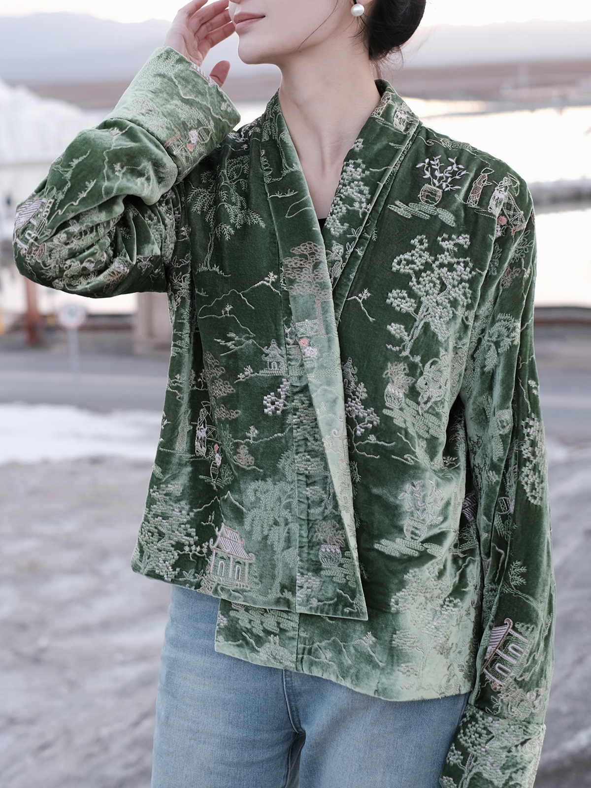盛唐牡丹 |如意湖亭丝绒手推绣外套