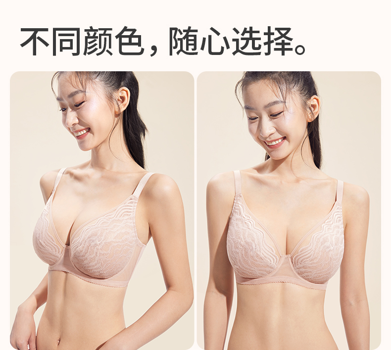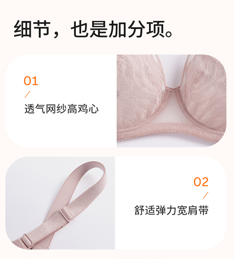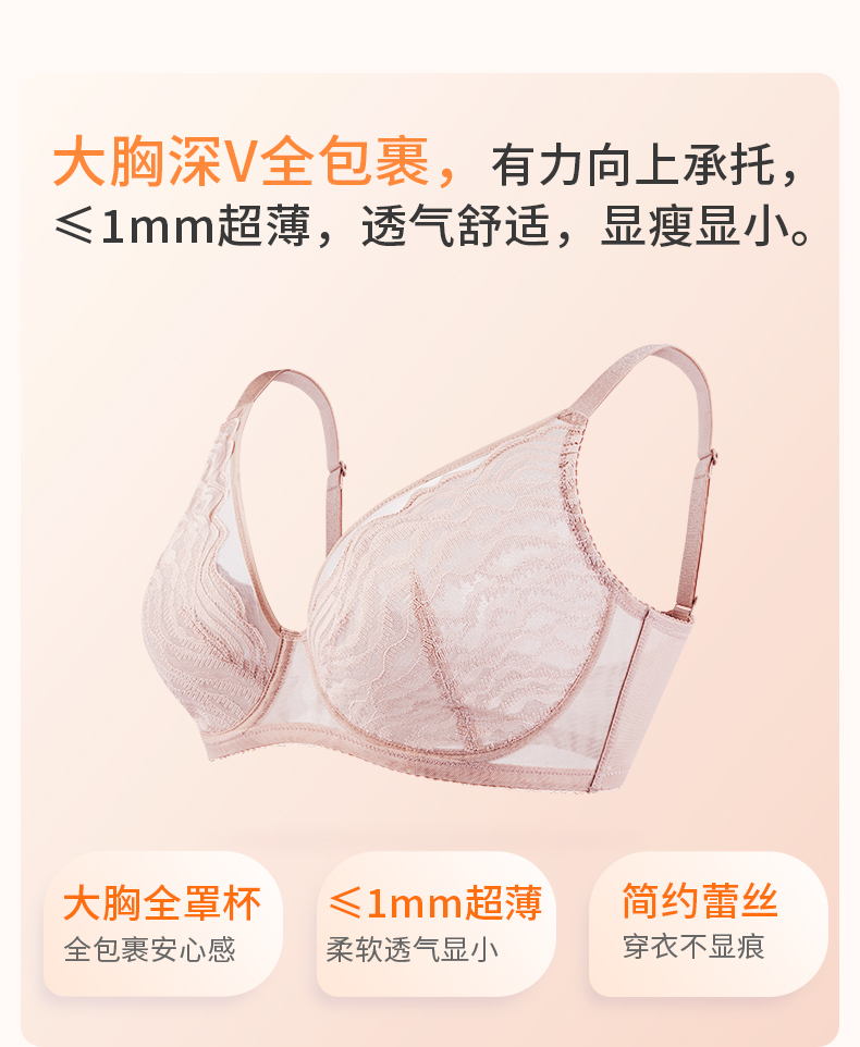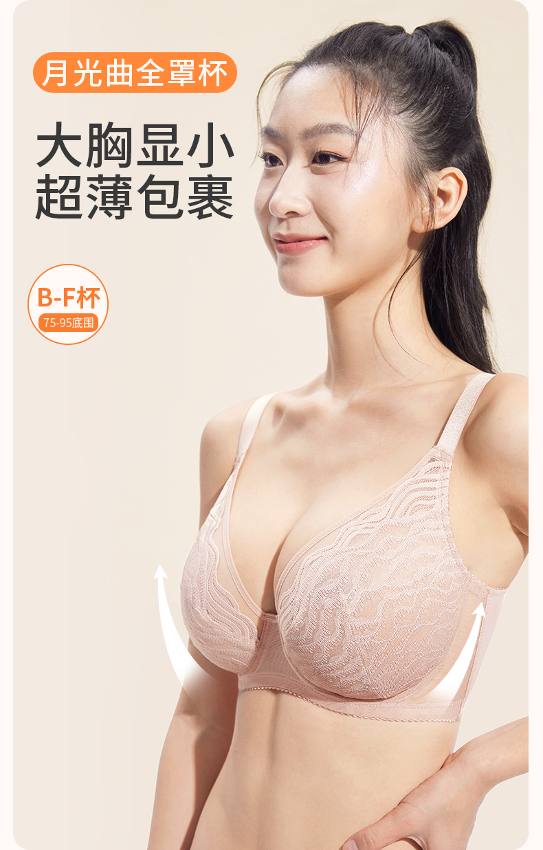 奶糖派大胸显小文胸全罩杯月光曲超薄无痕蕾丝显瘦显小大码内衣女