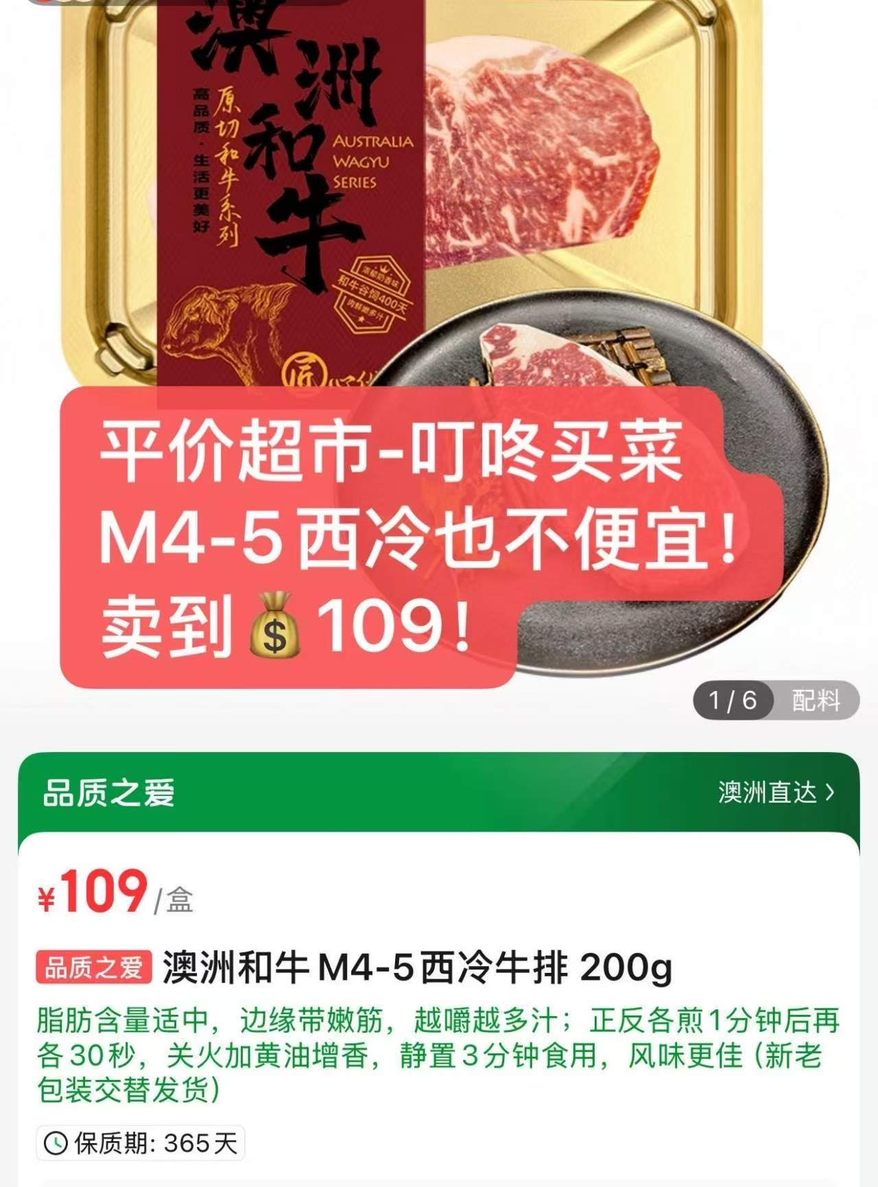 M4-5级别的西冷牛排也要买到109!!