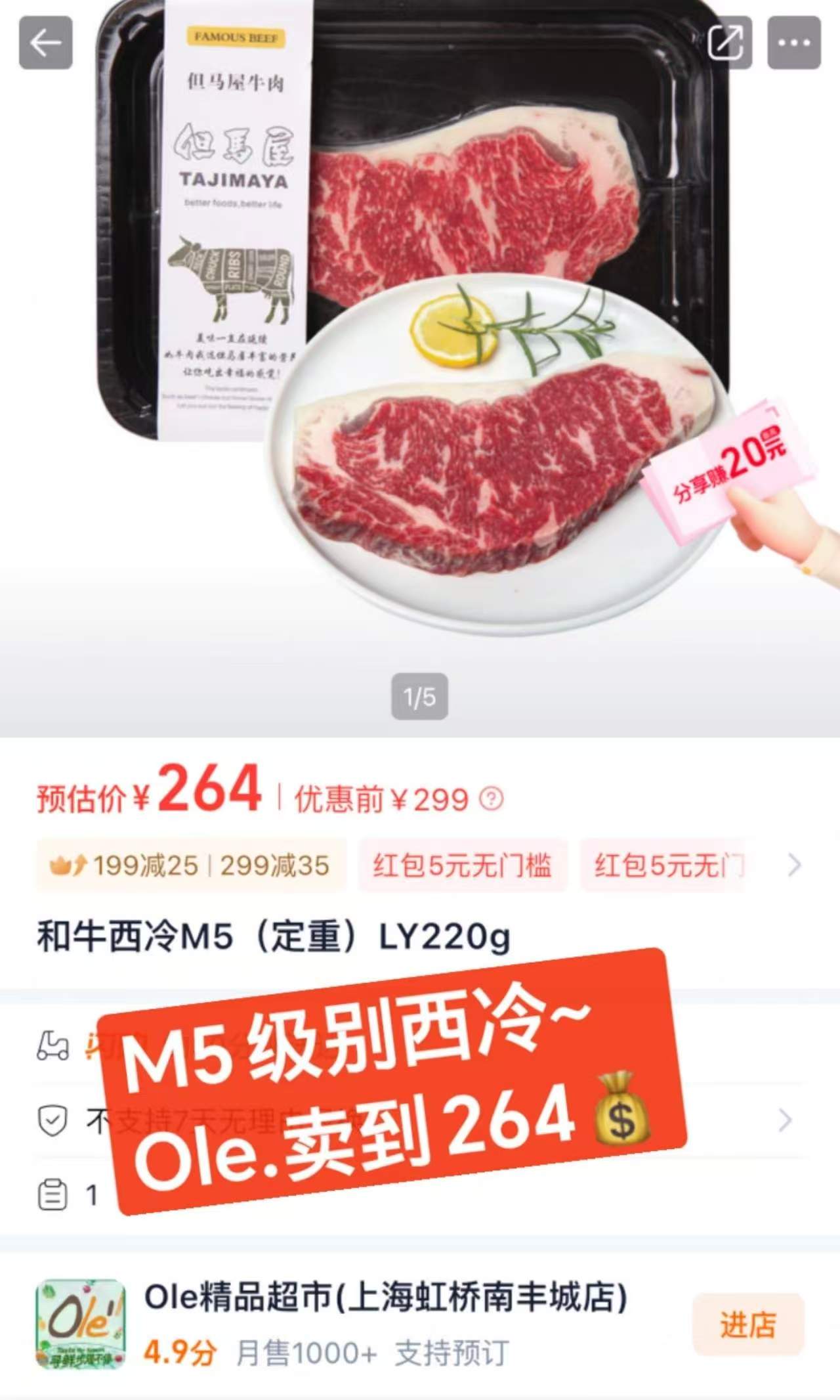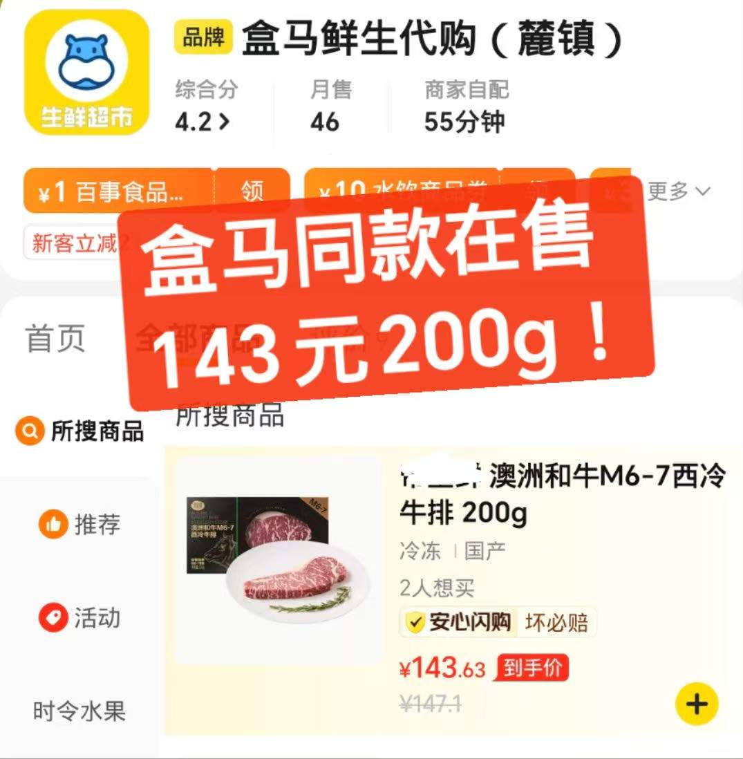盒马同品质在售M7,200g要卖143元!