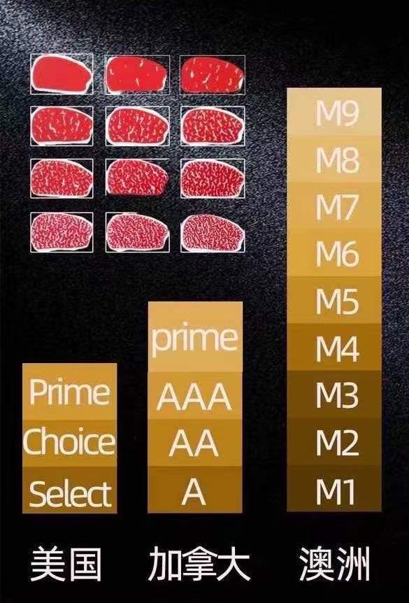 澳大利亚根据大理石花纹将牛肉分为M1-M9