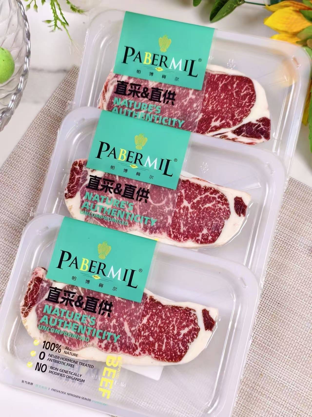 🥩高品级超值 · 澳洲和牛M7西冷牛排 · 100%原切 · 0激素 · 无添加 · 雪花细腻 · 有嚼劲 · 奶香浓郁