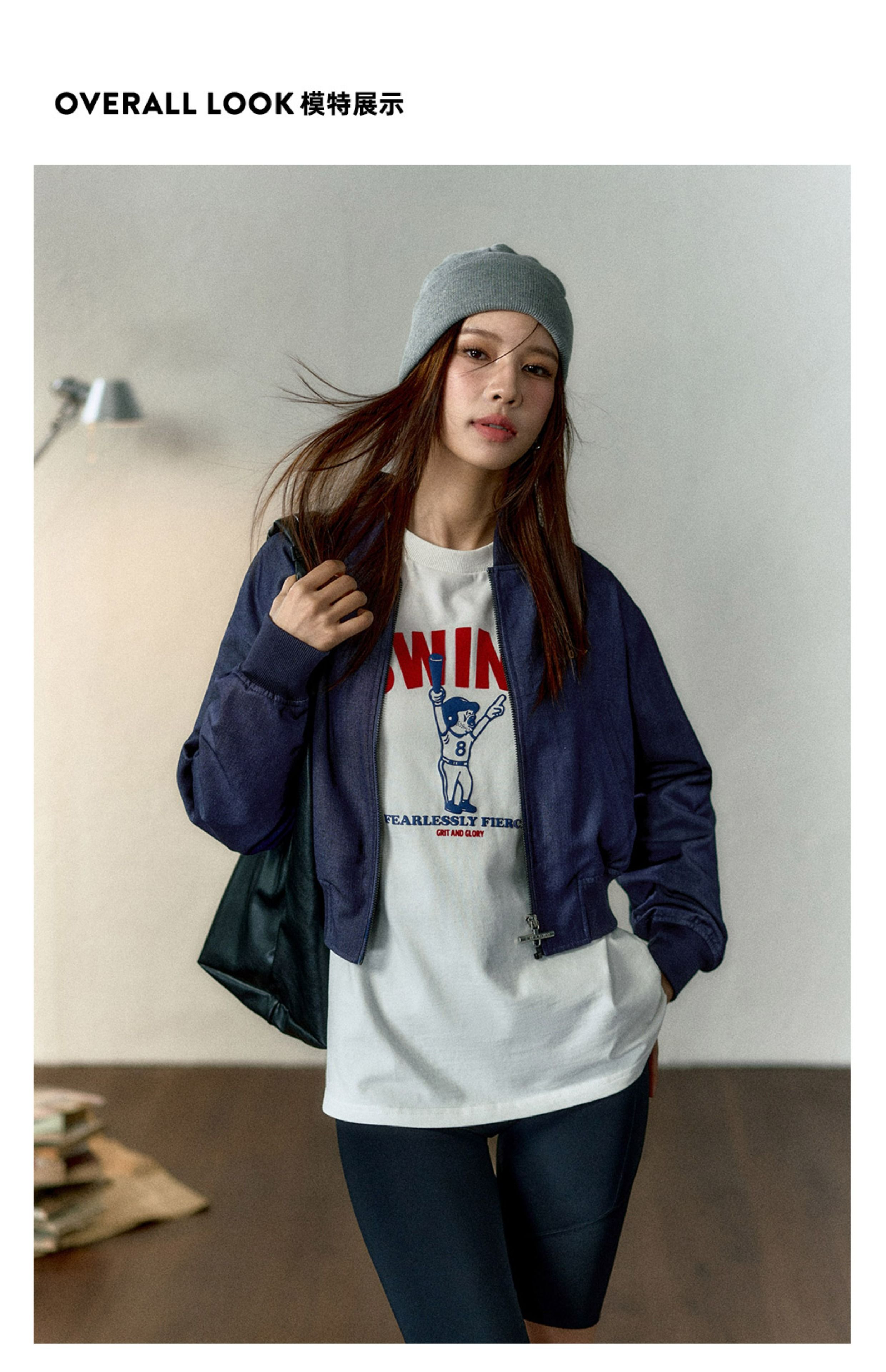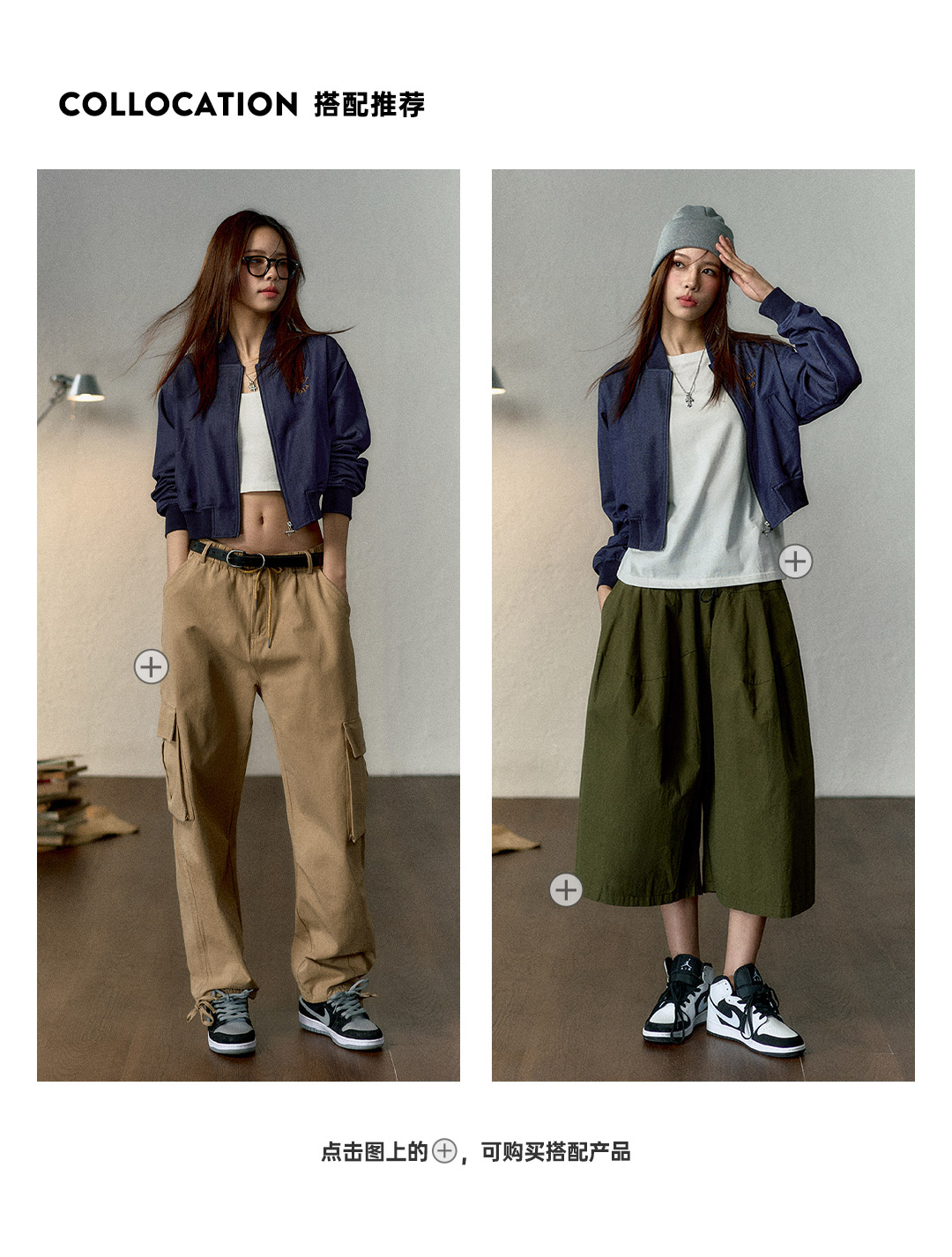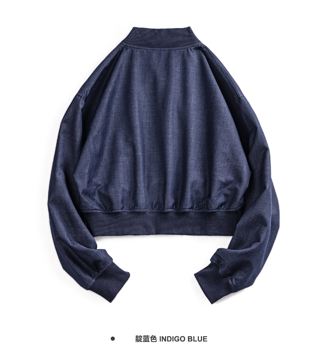 马登女装仿牛仔刺绣高腰棒球服辣妹风飞行员夹克拼接棒球衫外套