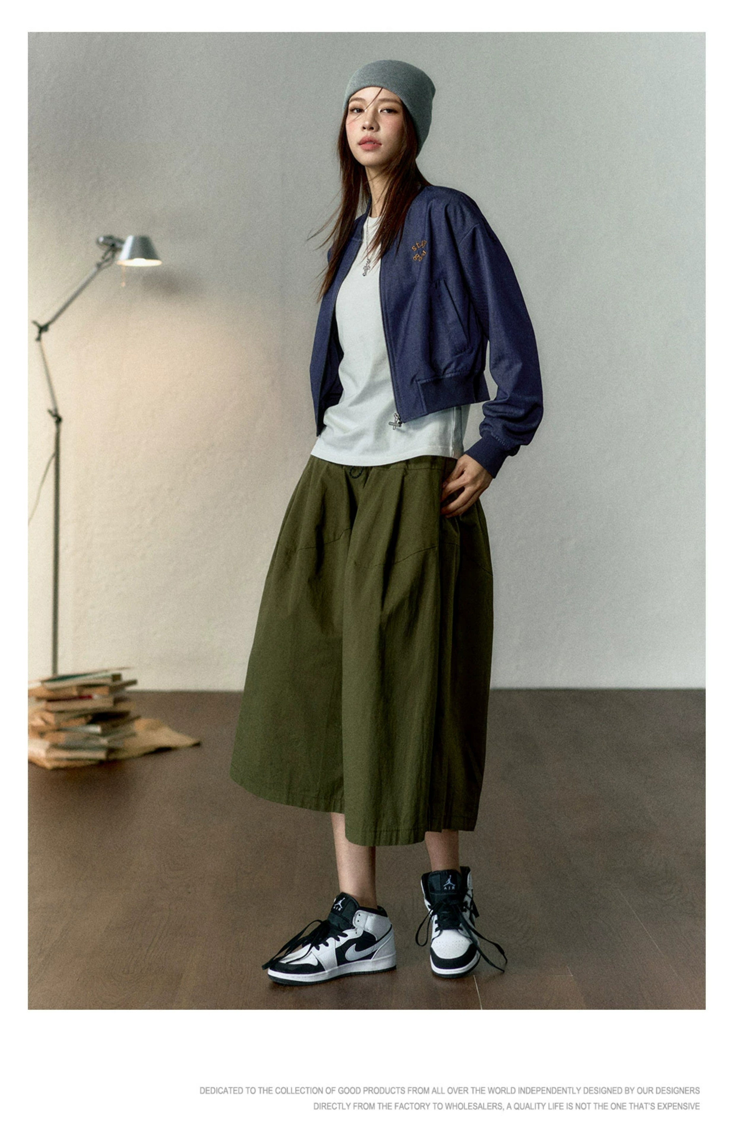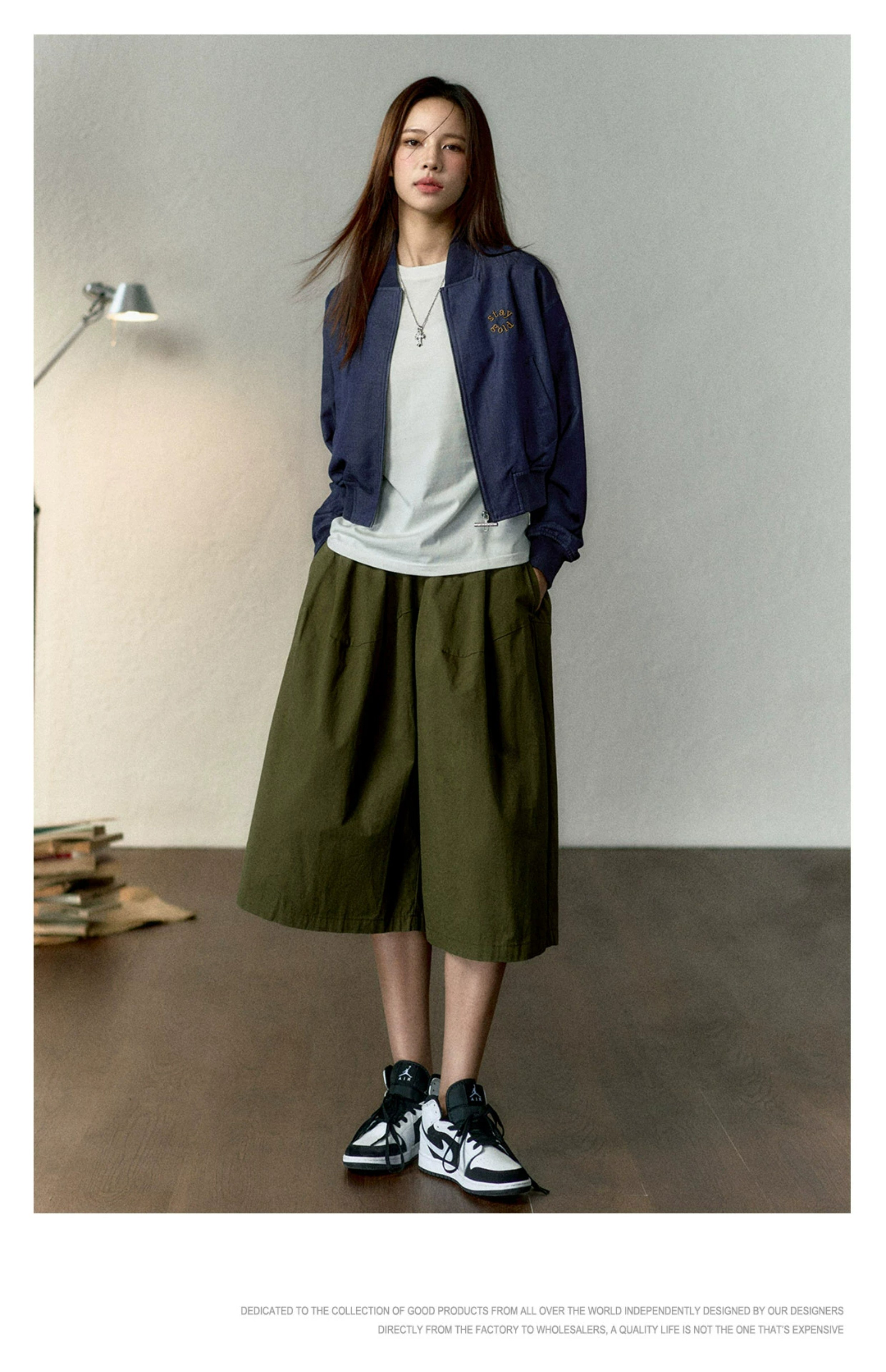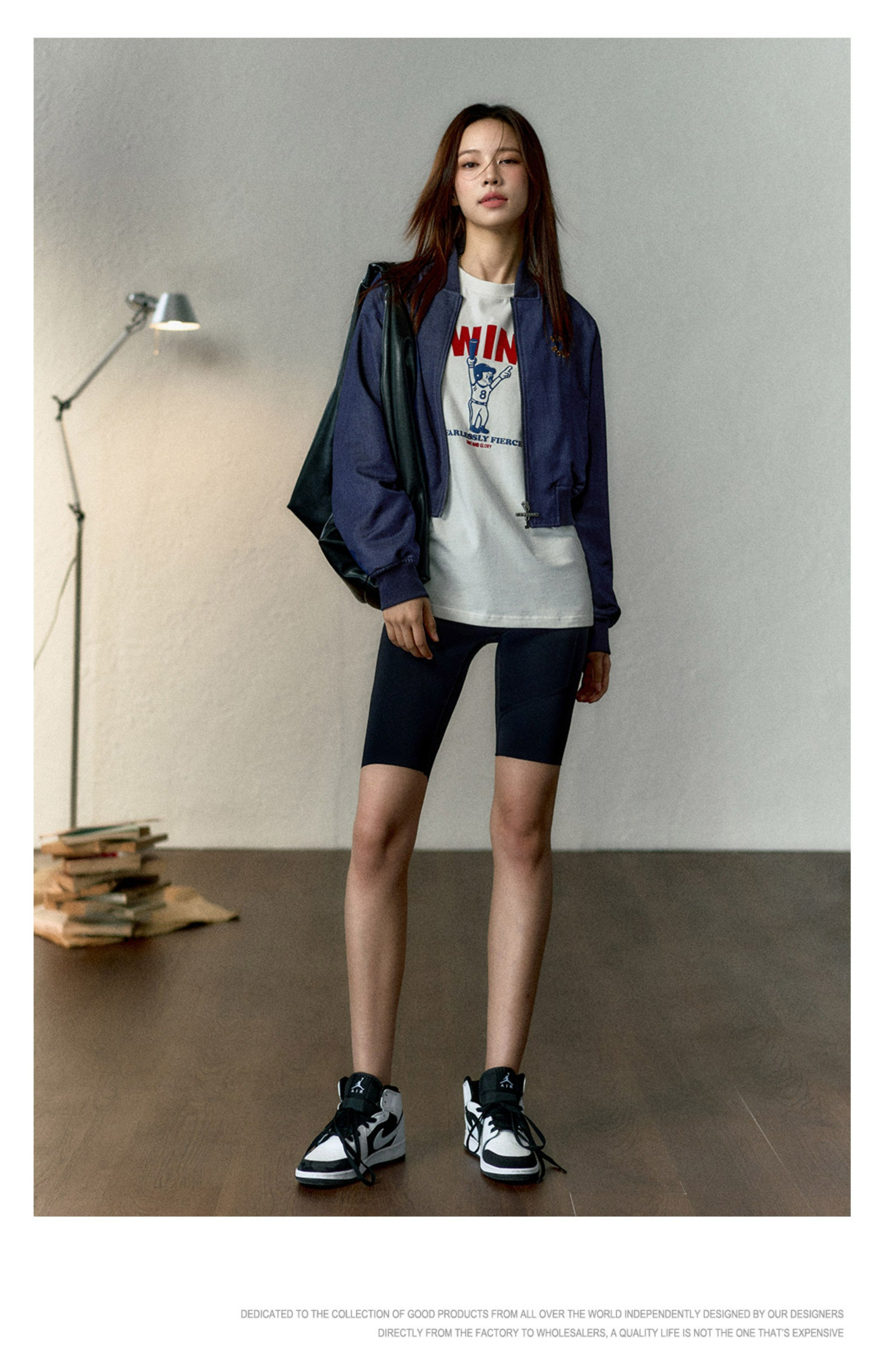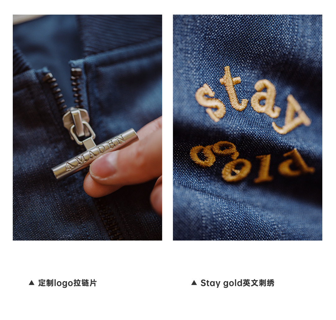 马登女装仿牛仔刺绣高腰棒球服辣妹风飞行员夹克拼接棒球衫外套