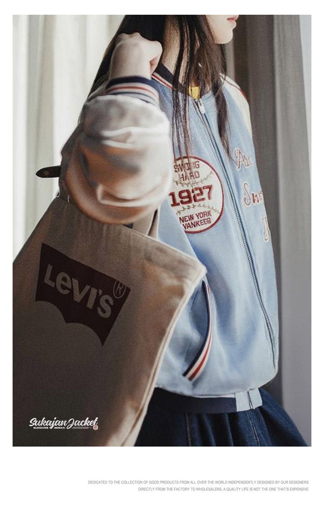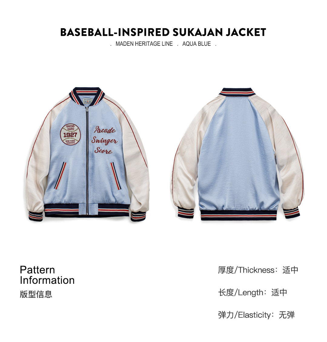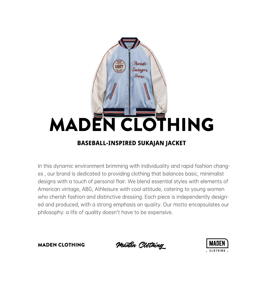 马登美式复古宽松横须贺重工刺绣棒球服领夹克缎面开衫外套女士秋