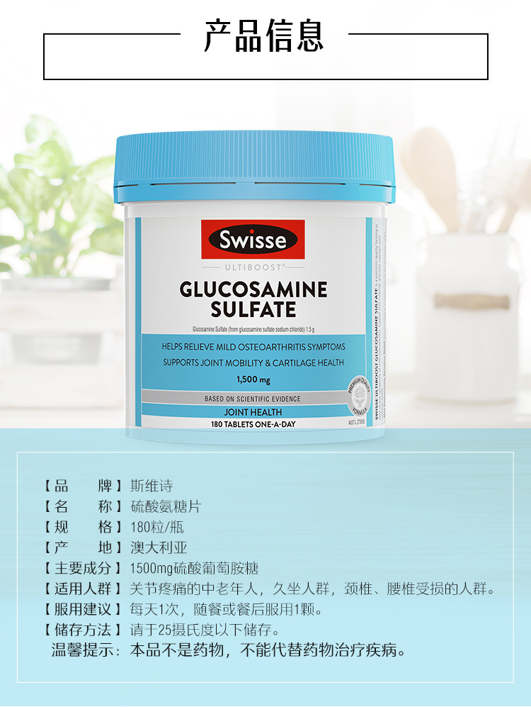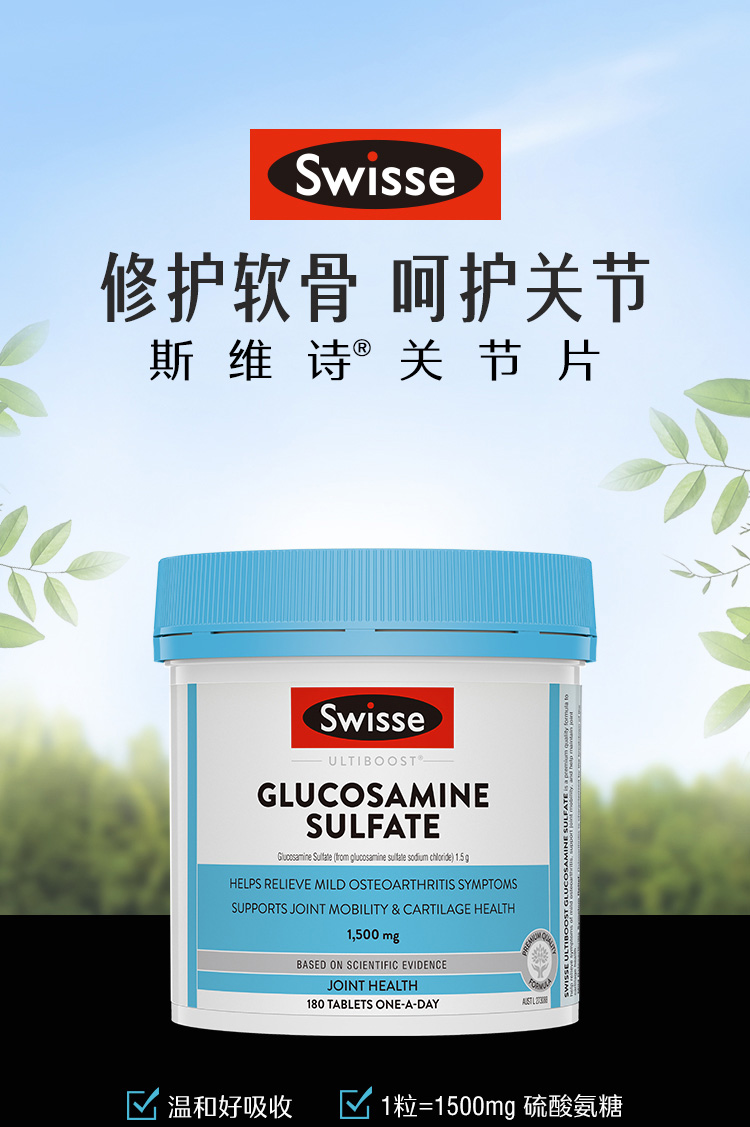 【海外直邮】Swisse斯维诗氨糖维骨力关节片氨糖软骨素关节宝